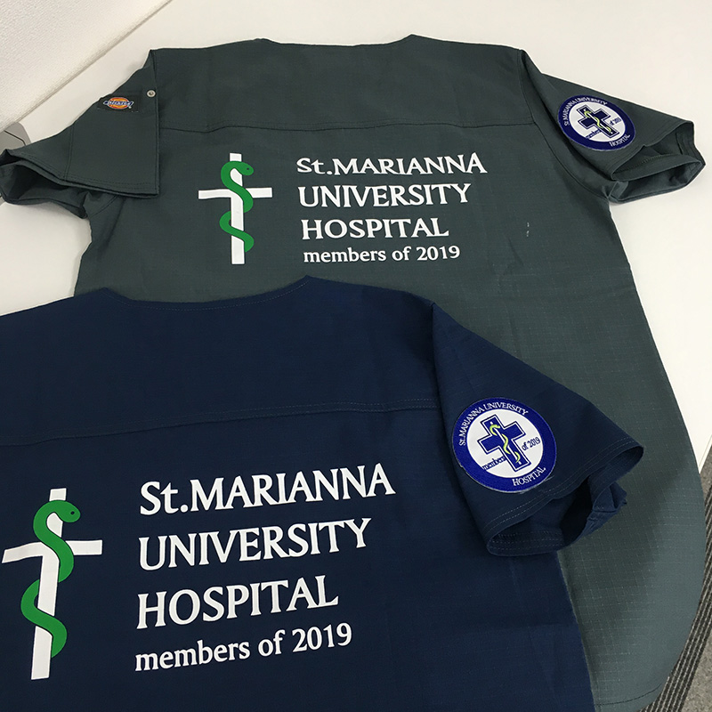 刺繍ワッペン 聖マリアンナ医科大学病院2019年研修医様 Cランクかっこいい円形(丸型)デザイン細かい文字袖複雑タイプ高運針数デザイン 聖マリアンナ医科大学病院2019年様スクラブロゴマーク刺繍デザインのご紹介です。 製作のご依頼ありがとうございました。 このデザインについて 刺繍位置 :右袖 刺繍サイズ:左右8cm ワッペン生地カラー:ホワイト 刺繍カラー:3色 ロイヤルブルー、ホワイト、イエローグリーン その他加工:背中シルクプリント2色 使用スクラブ:Dickies(ディッキーズ)7045SCスクラブ ※右袖はポケットがあるため、刺繍やプリント加工ができません。 この記事をシェア