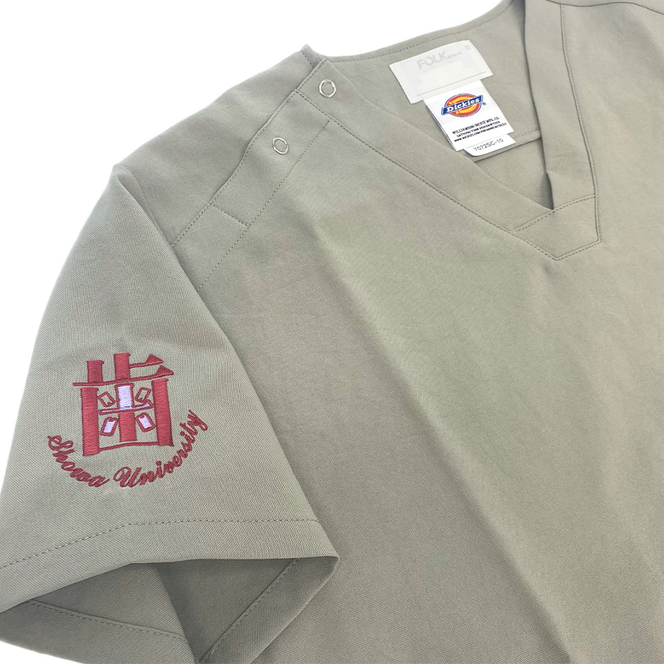 デザイン刺繍 昭和大学歯学部様 右袖刺繍デザイン シンプル袖 昭和大学歯学部様スクラブ右袖刺繍デザインのご紹介です。「歯」の漢字をオリジナルでアレンジしたデザイン刺繍です。 このたびは製作のご依頼ありがとうございました。 このデザインについて 【刺繍加工のポイント】 「歯」の漢字は明朝体をベースにしており、横の字画は細いですが、縦の字画は太く6mmとなっています。 刺繍の縫い方は、すべてサテンステッチを採用しております。 サテンステッチで対応できる限界の太さが7mmですので、限界ギリギリの太さです。7mmを超えても刺繍すること自体は可能ですが、その場合、糸が浮いてしまい着用しているときに糸が引っ掛かりやすくなります。なので、通常は7mm以上のサテンステッチは行いません。 また、「歯」の下の「Showa University」の文字の配置は、ストレートにすると円形の刺繍枠に収まらないため、逆アーチで配置して収めています。 刺繍位置 :右袖 刺繍サイズ:天地6.5cm 刺繍カラー:2色 ワインレッド・ラベンダー 使用スクラブ:Dickies 7072SCスクラブ この記事をシェア