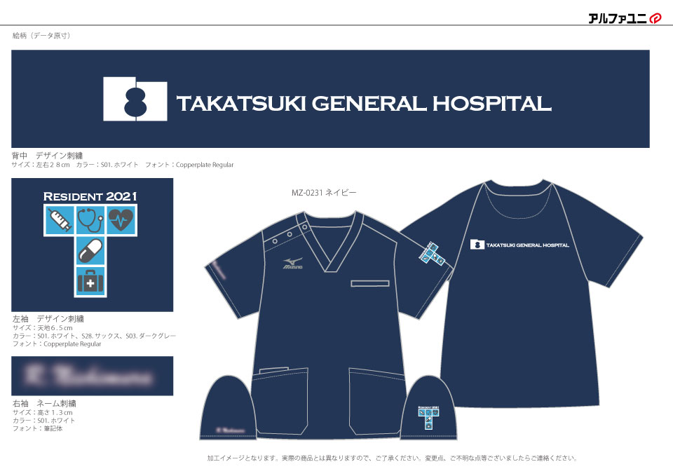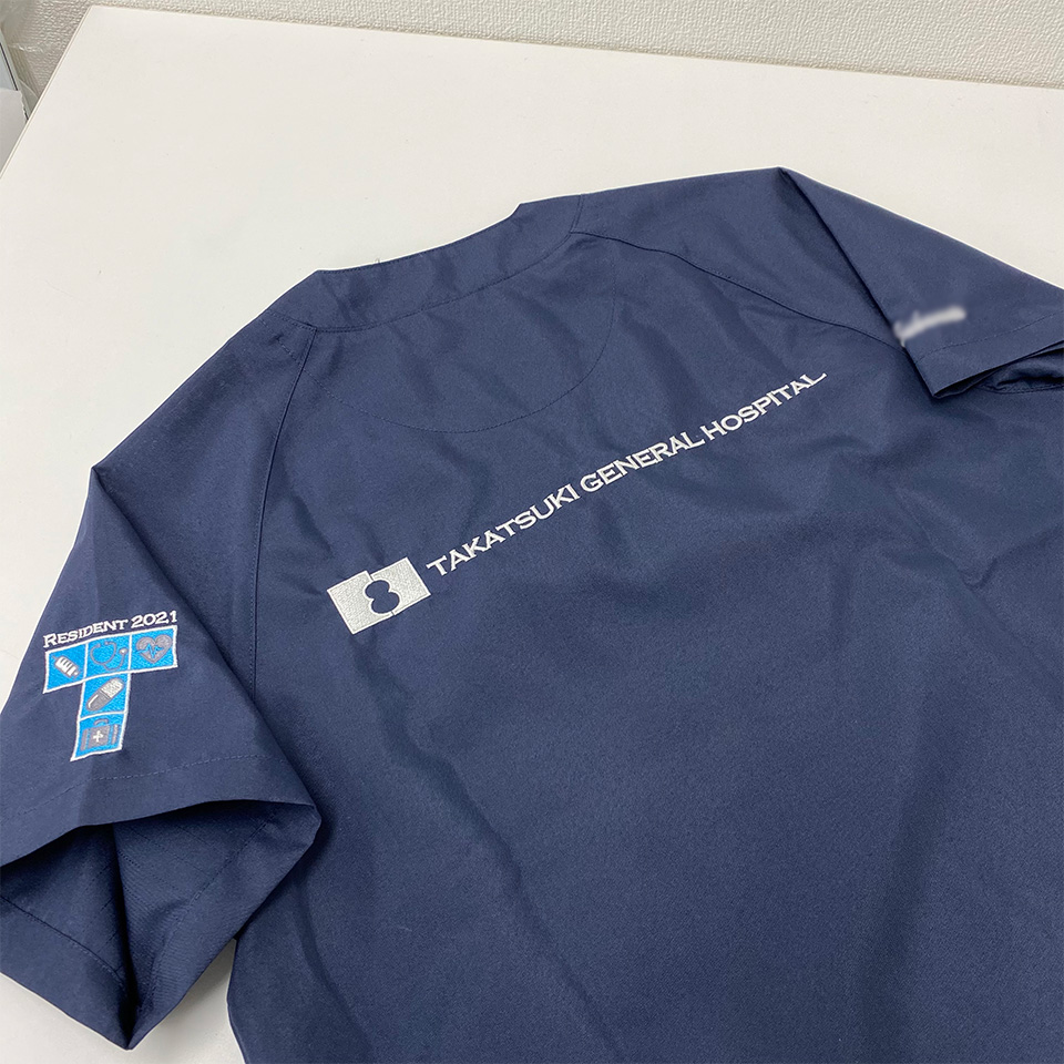 デザイン刺繍 高槻病院2021研修医様 BランクDランクかわいいハート心電図注射器細かい文字聴診器複雑タイプ 高槻病院2021研修医様スクラブロゴマーク刺繍デザインのご紹介です。このたびは製作のご依頼ありがとうございました。 このデザインについて 【刺繍加工のポイント】 袖の刺繍枠は円形で、刺繍可能サイズは直径8cmまでとなります。 こちらの「T」型のデザインは角があるため、円形に収めるために大幅に縮小し天地6.5cmとなりました。 仮に枠の形が8×8cmの角形であれば、天地(高さ)8㎝まで設定できるのですが、袖の刺繍枠は円形であることがポイントです。 そのため、四角型のデザインは角を円の中に収めるために大幅に縮小しなければならないということです。 刺繍位置 :背中/左袖/右袖 刺繍サイズ:左右28cm/天地6.5㎝/高さ1.3㎝ 刺繍カラー:1色 ホワイト/3色 ホワイト・サックス・ダークグレー/1色 ホワイト 使用スクラブ:MIZUNO MZ-0231スクラブ この記事をシェア