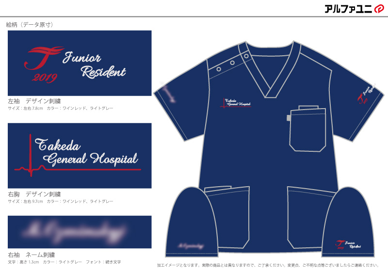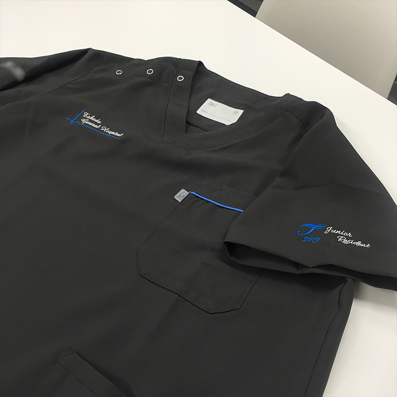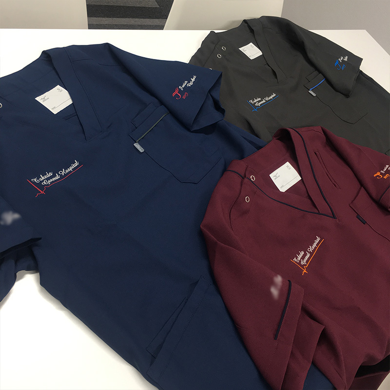 デザイン刺繍 竹田綜合病院2019様 MZ-0018 Aランクシンプル心電図胸袖 竹田綜合病院2019様スクラブロゴマーク刺繍デザインのご紹介です。このたびは製作のご依頼ありがとうございました。 このデザインについて 【刺繍加工のポイント】 心電図の直線を刺繍で綺麗にまっすぐ再現することは意外と難しいのですが、出来上がりが綺麗な直線で表現できている点にご注目ください。 特に細い線の場合歪みやすくなります。 刺繍位置 :左袖/右胸/右袖 刺繍サイズ:左袖 左右7.8cm/右胸 左右9.7cm/右袖 高さ1.3cm 刺繍カラー:ワインレッド・ブルー・オレンジ・ライトグレー 使用スクラブ:ミズノ(MIZUNO) MZ-0018 スクラブ(男女兼用) この記事をシェア