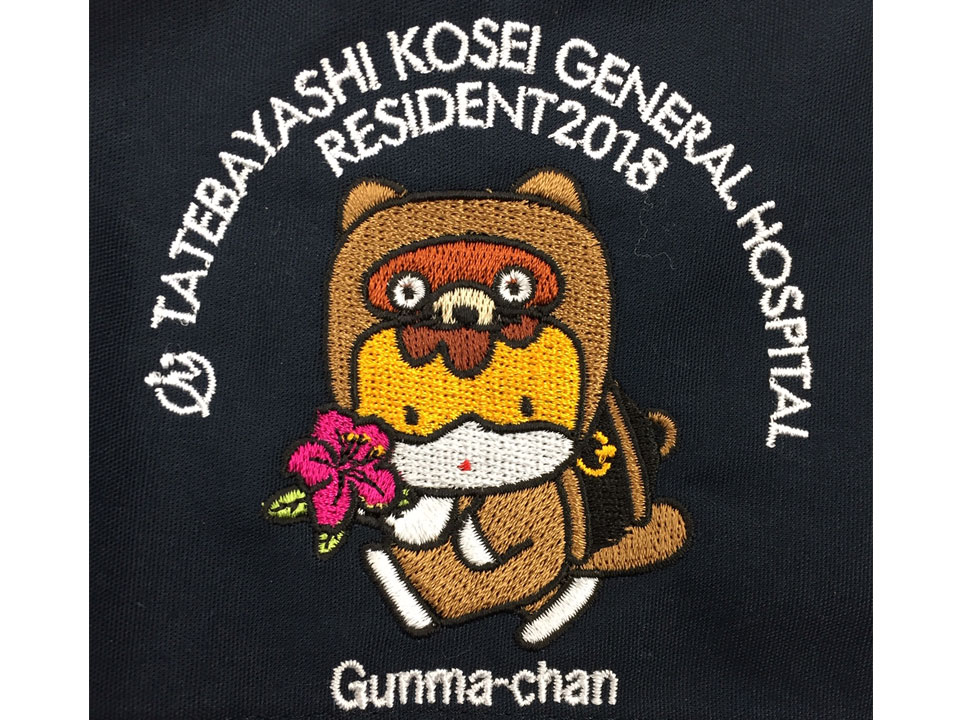デザイン刺繍 公立館林厚生病院様+ご当地ぐんまちゃん Dランクかわいいキャラクター円形(丸型)デザイン袖複雑タイプ 公立館林厚生病院様+ご当地ぐんまちゃんスクラブ刺繍デザインのご紹介です。製作のご依頼ありがとうございました。 患者さんも可愛いデザインに癒されますね。 このデザインについて 【刺繍加工のポイント】 県の広報から指示された細かい指示色と糸色を合わせて、何とか10色で表現することができ、無事承認をいただきました。 同じ色でも弊社の場合は、細かい部分は細い糸、大柄の部分は太い糸を使用しますので、 詳細に再現しようとすると、1色で糸を2パターン(2色分)使用して加工することがあります。 デザインによって、糸や針の太さを変えるなど、精緻に段取りすることでお客様にご満足いただける刺繍をご提供しています。 刺繍位置 :右袖 刺繍サイズ:左右8㎝ 刺繍カラー:指定色10色 この記事をシェア