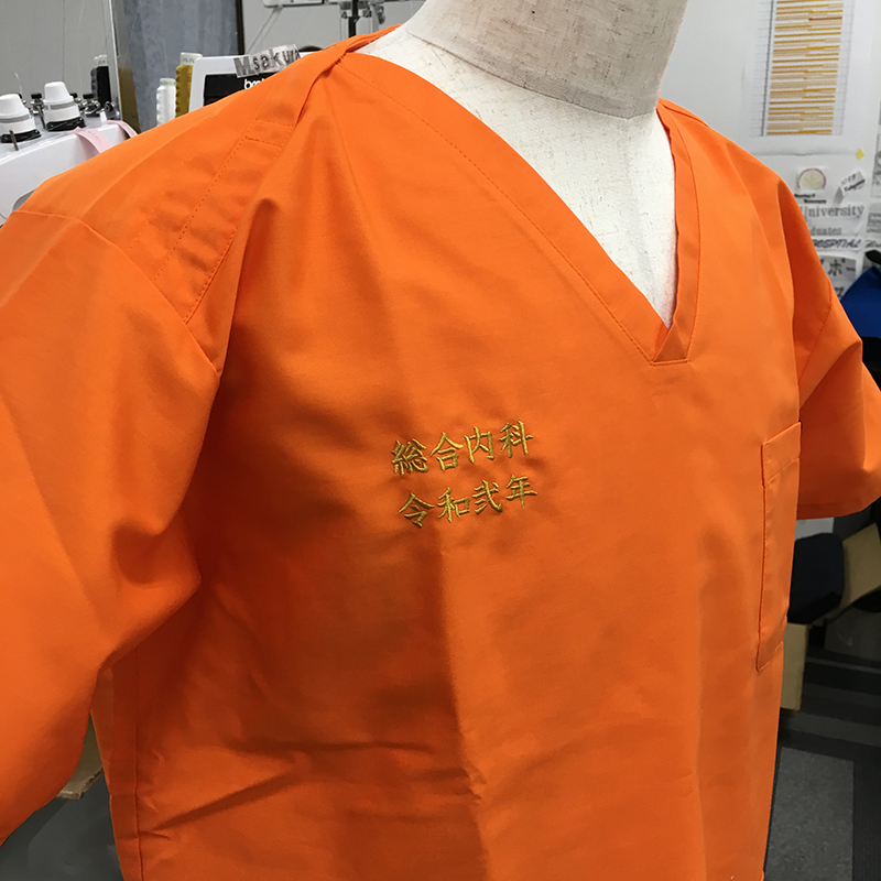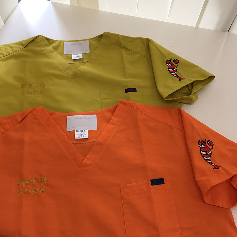デザイン刺繍 東海大学医学部附属大磯病院様 Cランク動物袖 東海大学医学部附属大磯病院様スクラブロゴマーク刺繍デザインのご紹介です。このたび製作のご依頼ありがとうございました。 このデザインについて 【刺繍加工のポイント】 袖の海老のデザイン刺繍の打ち方について補足します。 ストライプのホワイト部分、面積が大きいところはたたみ打ちですが、下の面積が小さい部分はサテン打ちに打ち方が変わっています。 刺繍位置 :左袖 刺繍サイズ:天地8cm 刺繍カラー:3色 S01.ホワイト・S02.ブラック・S07.レッド その他加工:右胸有り文字刺繍 刺繍書体 :楷書体 刺繍カラー:ゴールド この記事をシェア