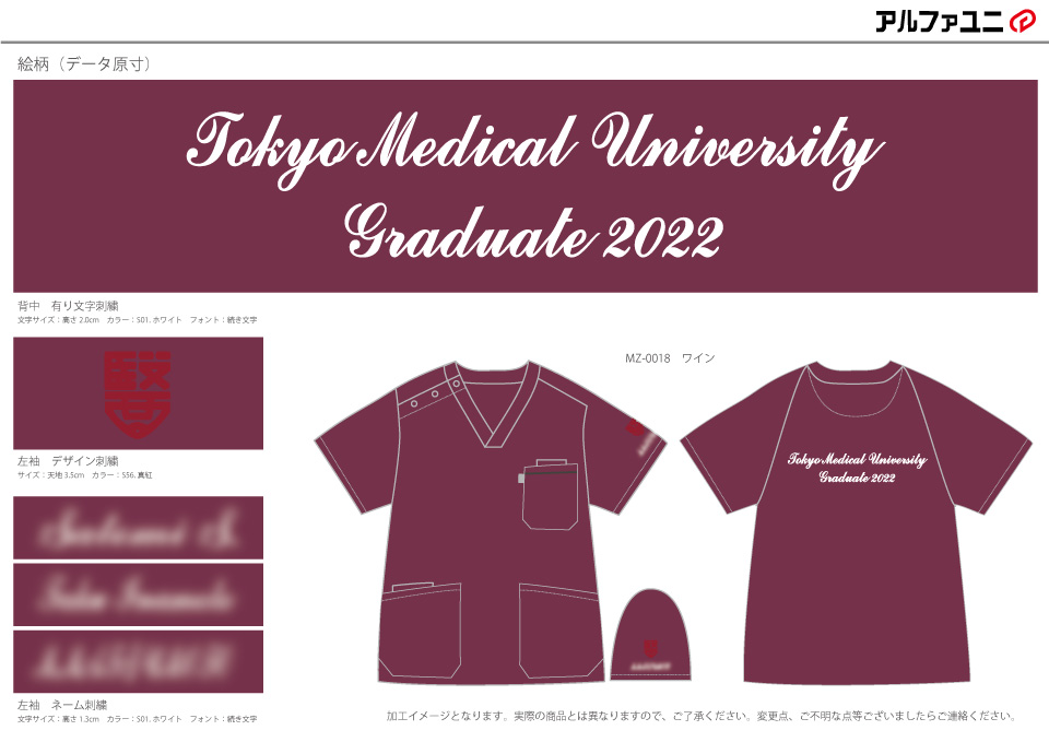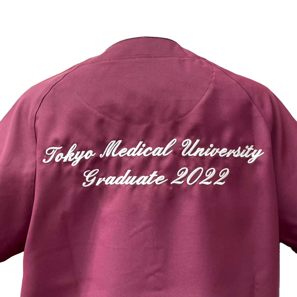 デザイン刺繍 東京医科大学医学部2022年卒業生様 MZ-0018 1色Aランク卒業記念校章袖 東京医科大学医学部2022年卒業生様スクラブロゴマーク刺繍デザインのご紹介です。 このたびは製作のご依頼ありがとうございました。 このデザインについて 【刺繍加工のポイント】 左袖の校章はすべてサテン打ち加工しておりますが、糸密度が高いことをご確認いただけると思います。 それによってかなり立体的な仕上がりになっています。 アルファユニの刺繍は糸密度を他社加工よりも3割程度高く設定しております! 刺繍位置 :背中 有り文字刺繍/左袖 デザイン刺繍/左袖 ネーム刺繍 刺繍サイズ:高さ2.0cm/天地3.5cm/高さ1.3cm 有り文字書体:続き文字 刺繍カラー:1色 ホワイト/1色 真紅/1色 ホワイト 使用スクラブ:MIZUNO MZ-0018スクラブ(男女兼用) この記事をシェア