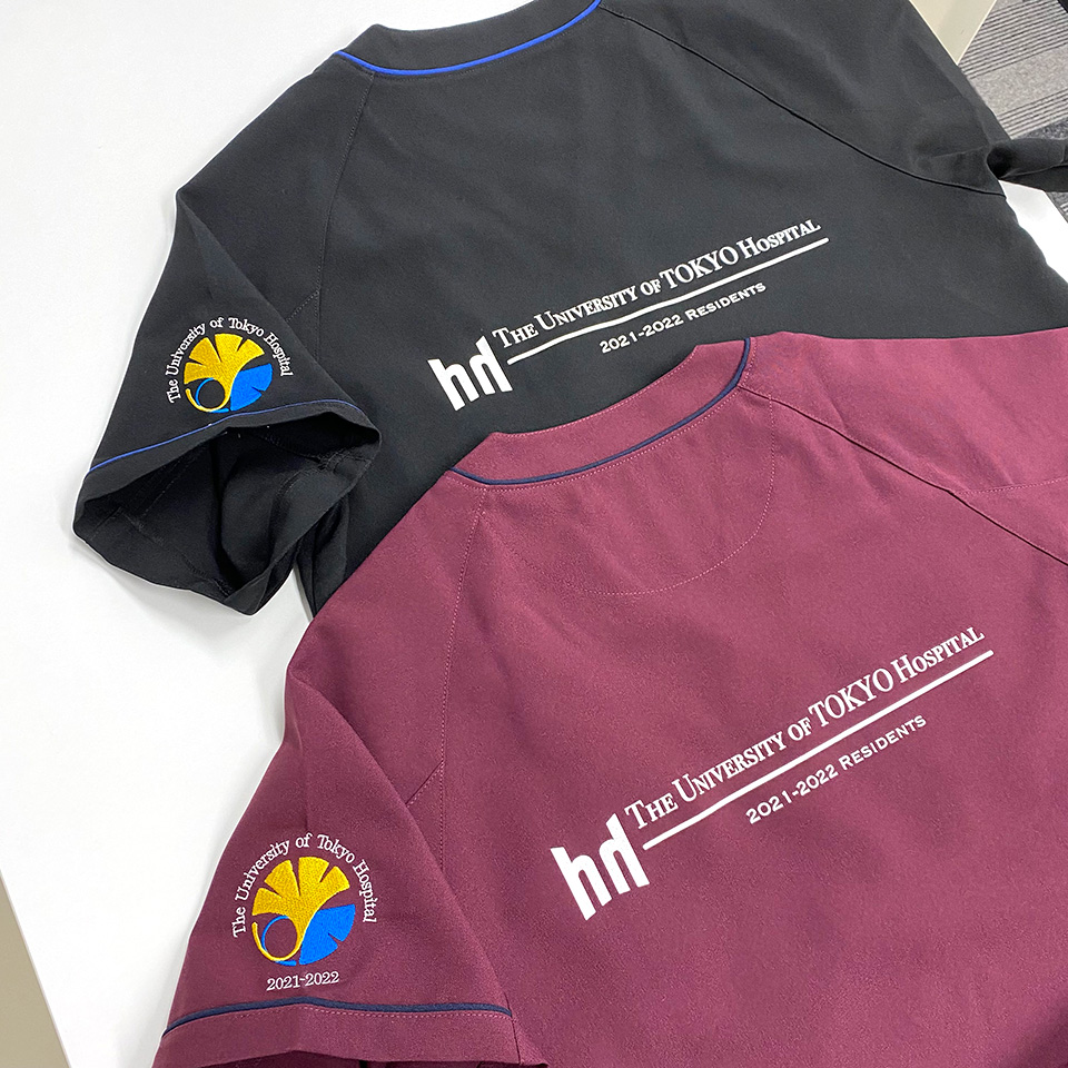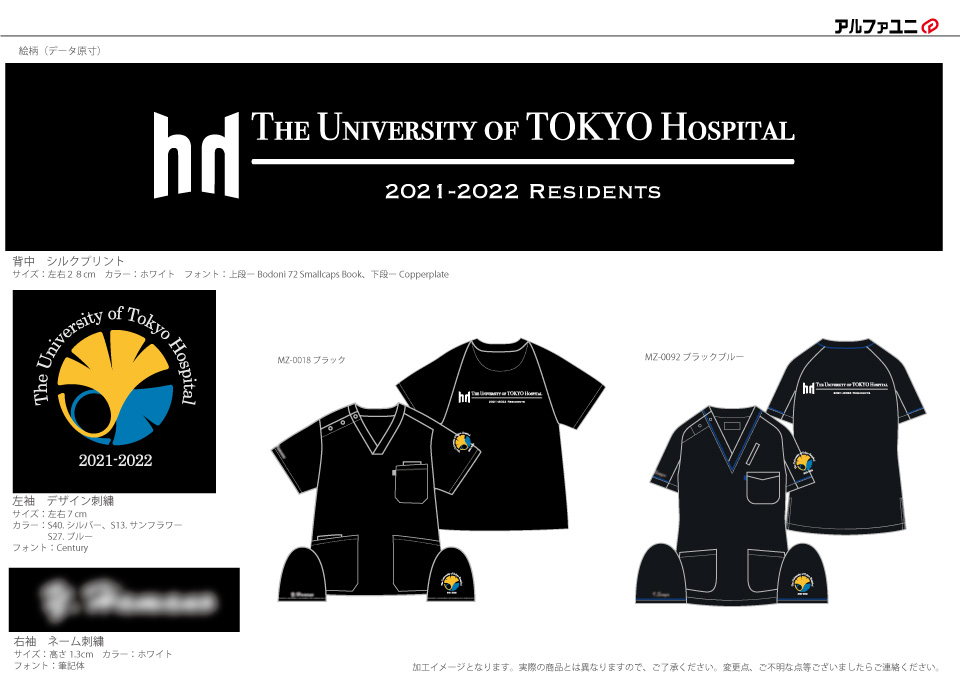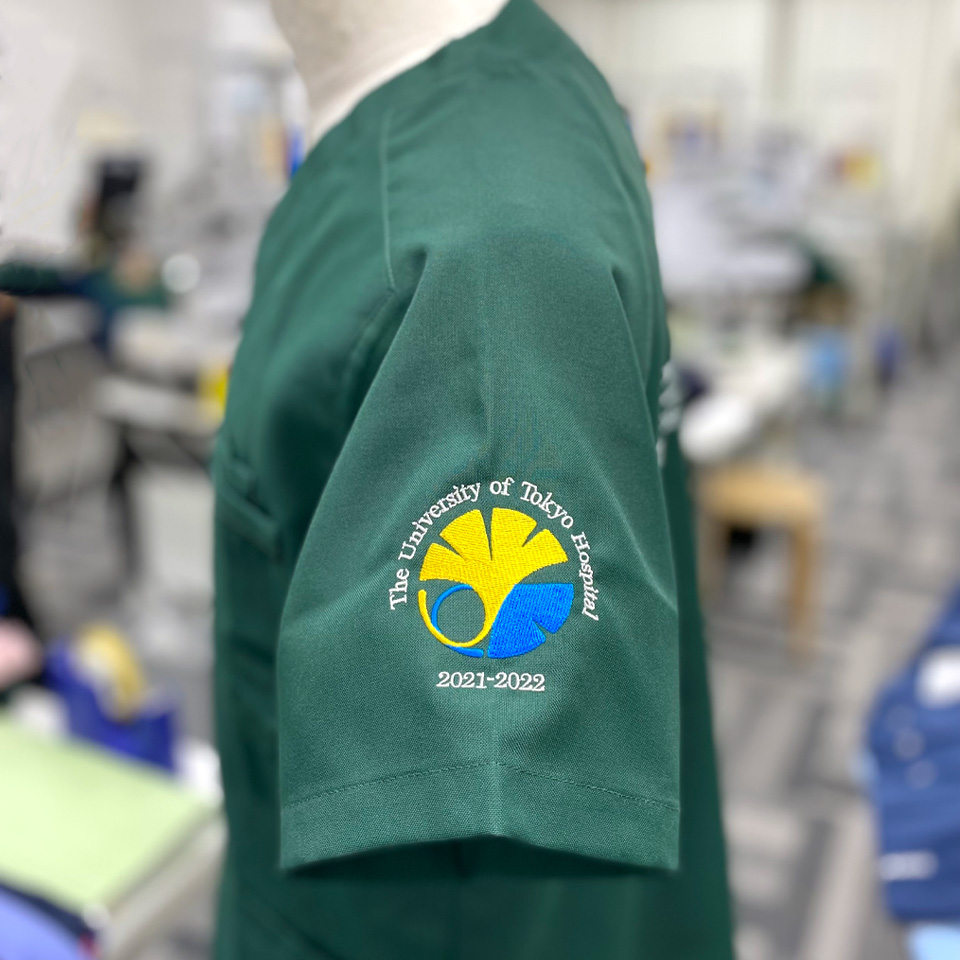 デザイン刺繍 東京大学医学部附属病院2021年度研修医様 MZ-0018 Cランク円形(丸型)デザイン校章袖 東京大学医学部附属病院2021年度研修医様スクラブロゴマーク刺繍デザインのご紹介です。このたびは製作のご依頼ありがとうございました。 このデザインについて 【刺繍加工のポイント】 イチョウのマークについて 2枚のイチョウが重なっていますが、実際には刺繍型上は抜き合わせになっており、2つのイラストは重なっていません。 刺繍位置 :左袖デザイン刺繍/右袖ネーム刺繍 刺繍サイズ:左右7cm/高さ1.3cm 刺繍カラー:3色 シルバー・サンフラワー・ブルー/3色の中から1色選択 ホワイト・ネイビー・ブラック 使用スクラブ:MIZUNO MZ-0018、MIZUNO MZ-0092 この記事をシェア