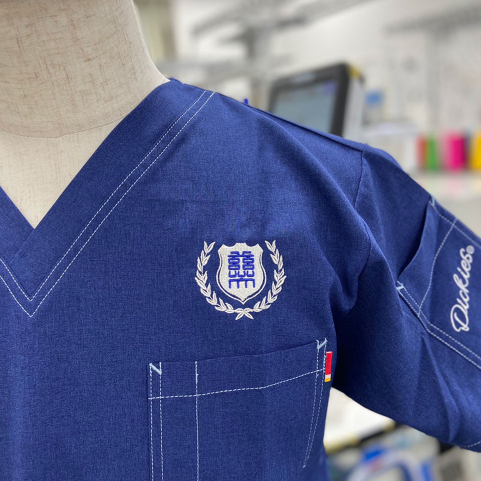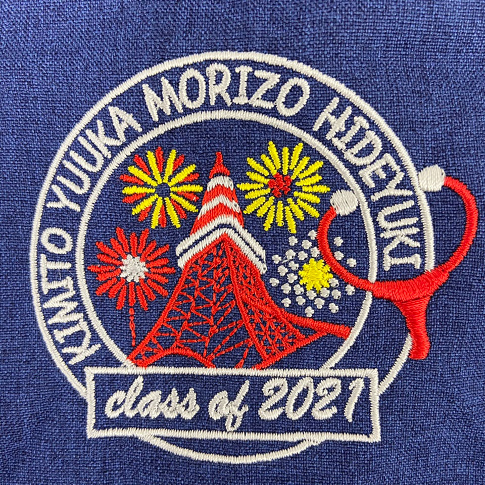 デザイン刺繍 東京慈恵会医科大学class of 2021様 BランクCランク卒業記念建物校章細かい文字聴診器胸袖複雑タイプ 東京慈恵会医科大学class of 2021様スクラブロゴマーク刺繍デザインのご紹介です。 このデザインについて 【刺繍加工のポイント】 刺繍加工のポイントは何と言っても東京タワーの周りの花火のイラストです。 元々はもっと細かい画像を希望されましたが、刺繍の限界点のぎりぎりでデザインを調整し、お客様のご納得をいただき、最終的には精度の高い刺繍に仕上がったと思っております。 東京タワーの表現について、できる限り細かさを残し、刺繍での仕上がりを想定した上で調整し、ステッチ表現も使用しながら加工しました。 スライド画像4枚目は刺繍型の画像です。 通常はオープンにしていない画像ですが、今回は特別に掲載しております。 かなりの針数となり約11000針となりました。 刺繍位置 :左袖/左ポケット口上 刺繍サイズ:左袖左右7.5cm/左ポケット口上左右6㎝ 刺繍カラー:左袖3色 ライトグレー・レッド・イエロー/左ポケット口上2色 ライトグレー/ロイヤルブルー 使用スクラブ:Dickies 7061SC スクラブ インディゴ この記事をシェア