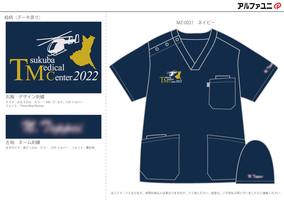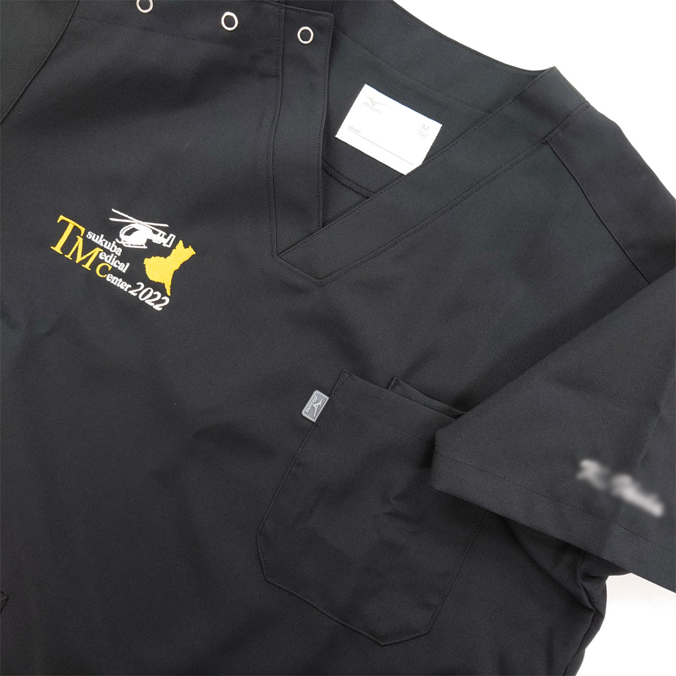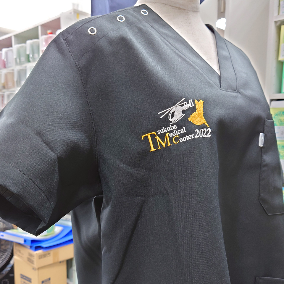 デザイン刺繍 筑波メディカルセンター病院2022年臨床研修医様 MZ-0021 ドクターヘリ刺繍動画あり地図細かい文字胸複雑タイプ 筑波メディカルセンター病院2022年臨床研修医様スクラブロゴマーク刺繍デザインのご紹介です。 ドクターヘリのシルエットのデザイン中心として右胸に刺繍をしました。 このたびは製作のご依頼ありがとうございました。 このデザインについて 【刺繍加工のポイント】 右胸の刺繍ということで左右9㎝以上でも刺繍を入れることができました。 袖の場合はどうしても8㎝というサイズの制約が出てしまうため、大きめのデザインをご希望であれば、 胸の位置への刺繍をおススメ致します。 茨城県の地図のシルエットのアウトラインを綺麗に再現するため、たたみの幅(ステッチ幅)を細かくして打ち込みました。 また、形状が複雑なのでアウトラインに縁取りを入れませんでした。 刺繍位置 :右袖デザイン刺繍/左袖ネーム刺繍 刺繍サイズ:左右9.2cm/高さ1.3cm 刺繍カラー:2色 ゴールド・シルバー/1色 シルバー この記事をシェア