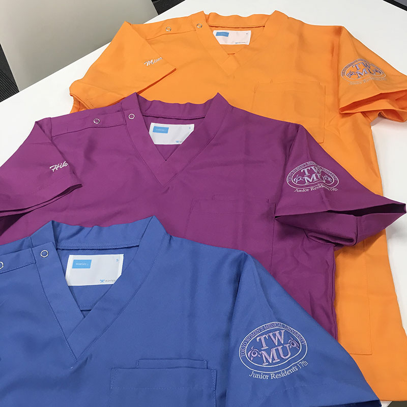 デザイン刺繍 東京女子医科大学附属病院レンジデント17期様 Cランク細かい文字袖 東京女子医科大学附属病院レンジデント17期様スクラブロゴマーク刺繍デザインのご紹介です。このたびは製作のご依頼ありがとうございます。 このデザインについて 【刺繍加工のポイント】 TWMUの文字の両サイドのオブジェクトについて、刺繍で再現が厳しいため、若干簡素化をさせていただきました。 刺繍位置 :左袖 刺繍サイズ:左右7.9cm 刺繍カラー:2色 シルバー、ラベンダー 使用スクラブ:WHISEL WH11485スクラブ ダークグレー、ブラック、サックス、ターコイズ、ブルーグレー、ロイヤルブルー、ネイビー、カーキ、ミントグリーン、グリーン、オレンジ、ピンク、ブラウン、ライトパープル、ラベンダー、バーガンディ、ホワイト 全17色使用しました。 この記事をシェア