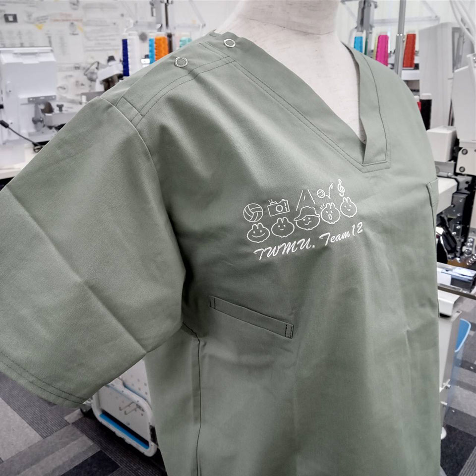 デザイン刺繍 東京女子医科大学TEAM12様 Aランクかわいいキャラクター胸 東京女子医科大学TEAM12様スクラブロゴマーク刺繍デザインのご紹介です。このたびは製作のご依頼ありがとうございました。 【お客様のコメント】 アルファユニ 青木様 この度はスクラブデザイン、手配ほか、大変お世話になりました。 非常に良い仕上がりで、皆喜んで使用しております。 またお世話になる機会がありましたらよろしくお願いします。 このデザインについて 【刺繍加工のポイント】 デザインが細かく、袖枠サイズに縮小すると潰れてしまう部分が出て来るため、左右10cmに設定し右胸に配置しています。 刺繍位置 :右胸 刺繍サイズ:左右10cm 刺繍カラー:1色 ホワイト 使用スクラブ:Dickies 7033SCスクラブ セージグリーン この記事をシェア