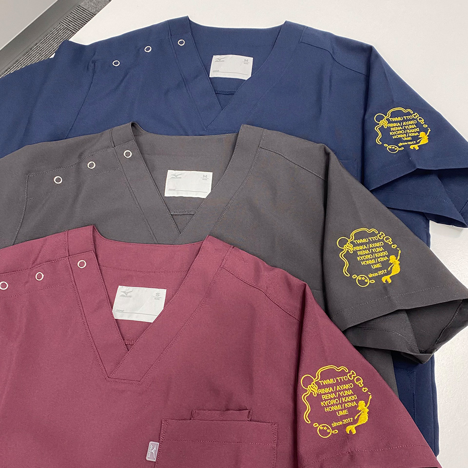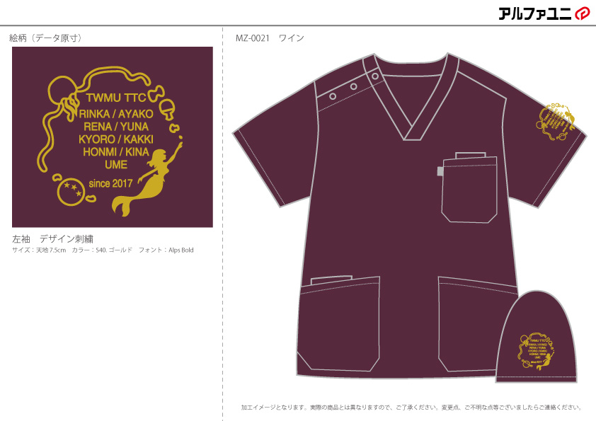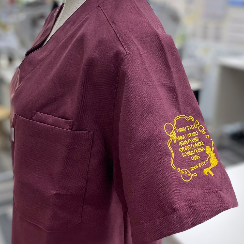 デザイン刺繍 東京女子医科大学卓球部様 MZ-0021 Cランクかわいいキャラクタースポーツ円形(丸型)デザイン動物星細かい文字袖 東京女子医科大学卓球部様スクラブロゴマーク刺繍デザインのご紹介です。このたびは製作のご依頼ありがとうございました。 このデザインについて 【刺繍加工のポイント】 袖用刺繍枠の刺繍可能範囲直径8㎝をフルに使って素材と文字を配置しました。 円形のレイアウトの定番は中央にマークを置き、その周りを文字で囲むパターンが多い中、文字を再現できる最小サイズで配置し、その周りをイラストで囲むという独自のレイアウトパターンとなっています。 卓球ラケットのシルエットや星など、細かい素材も何とか罫線で表現し再現できています。 刺繍位置 :左袖 刺繍サイズ:天地7.5cm 刺繍カラー:左袖1色 ゴールド 使用スクラブ:MIZUNO MZ-0021 この記事をシェア