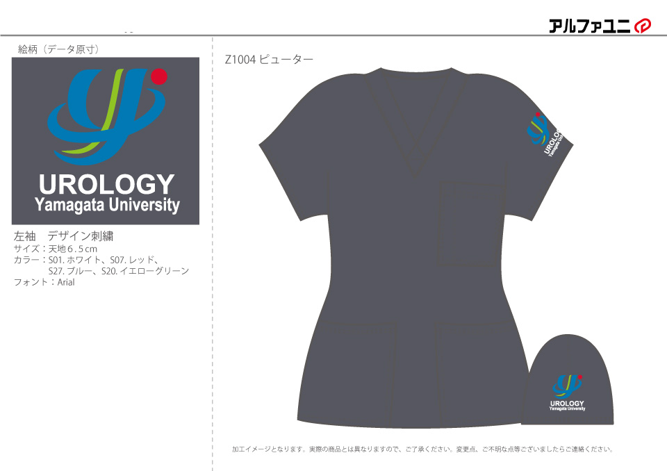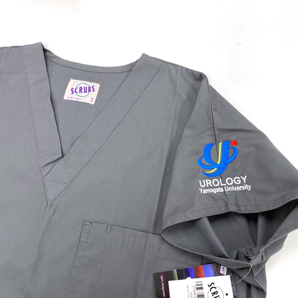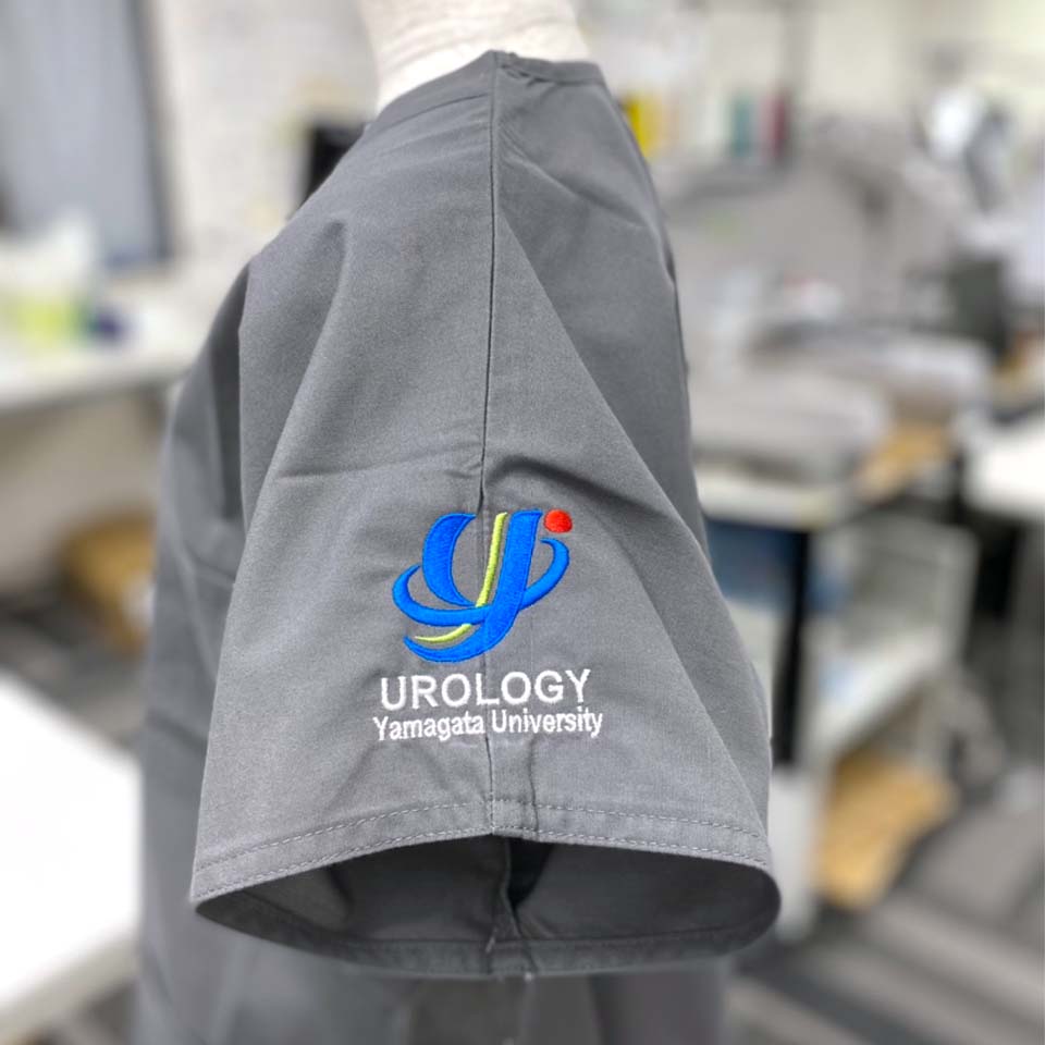 デザイン刺繍 山形大学医学部腎泌尿器外科学講座様 Z1004 Bランクロゴマーク細かい文字袖 山形大学医学部腎泌尿器外科学講座様スクラブロゴマーク刺繍デザインのご紹介です。このたびは製作のご依頼ありがとうございました。 このデザインについて 【刺繍加工のポイント】 袖中央縦に縫い目が走っている仕様のスクラブに刺繍をしております。 アップ画像をご覧いただければ、縫い目をしっかりと押さえて、デザインが変形することなく刺繍加工ができていることがお分かりになると思います。 ちなみにシルクプリントの場合は、版を置いたときに段差ができそれによってインクが滲みますので、綺麗に加工できません。 そのため、通常はお請けしておりません。 刺繍位置 :左袖 刺繍サイズ:天地6.5cm 刺繍カラー:4色 ホワイト・レッド・ブルー・イエローグリーン 使用スクラブ:スクラブス Z1004 3ポケットトップ この記事をシェア