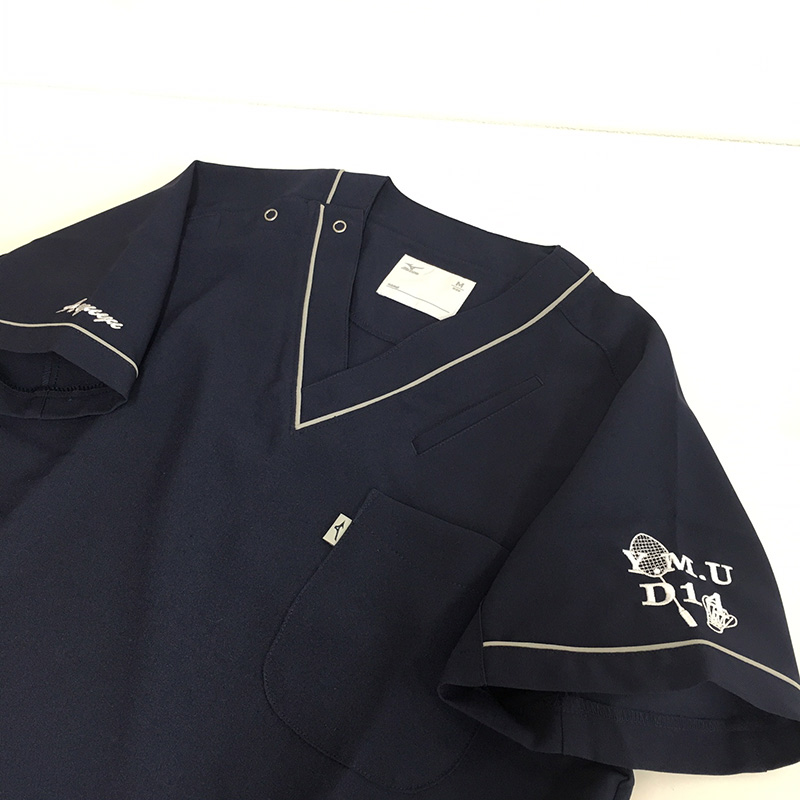 デザイン刺繍 山梨大学医学部バドミントン部D14様 Cランクスポーツ袖複雑タイプ 山梨大学医学部バドミントン部D14様スクラブロゴマーク刺繍デザインのご紹介です。 製作のご依頼ありがとうございました。 このデザインについて 【刺繍加工のポイント】 1色の表現ですが、レイヤー(層)分けしたデザインがイメージのまま表現できています。 具体的には、ラケット・シャトルが下層、文字が上層となり2層が重なっているように見えるデザインをそのまま再現できています。 ちなみにガット部分は横に振れませんのでステッチ表現となります。 プリントだと同化しますので、このような表現はできません。 刺繍だからこそできる立体的表現です。 刺繍位置 :左袖 刺繍サイズ:天地7cm 刺繍カラー:ホワイト この記事をシェア