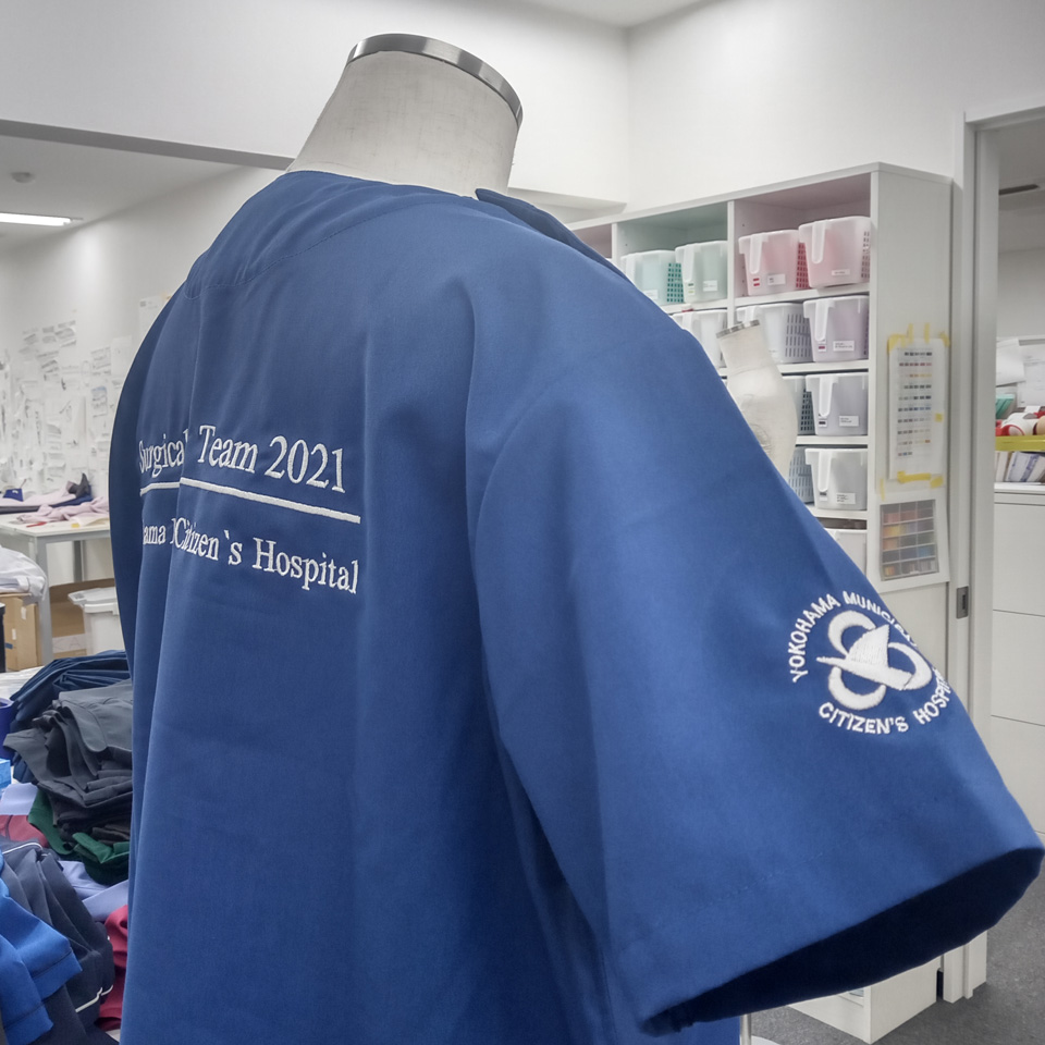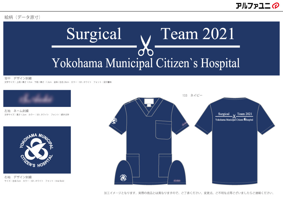 デザイン刺繍 横浜市立市民病院消化器外科様 133 スクラブ AランクDランクロゴマーク円形(丸型)デザイン背中袖 横浜市立市民病院消化器外科様スクラブロゴマーク刺繍デザインのご紹介です。このたびは製作のご依頼ありがとうございました。 このデザインについて 【刺繍加工のポイント】 刺繍位置:右袖デザイン刺繍 / 左袖ネーム刺繍 / 背中デザイン刺繍 刺繍サイズ:左右5cm / 高さ1.3cm / 上段 高さ1.7cm、下段 高さ1.3cm、全体 左右28cm 刺繍カラー:1色 ホワイト / 1色 ホワイト / 1色 ホワイト 使用スクラブ:カゼン(KAZEN)133 スクラブ この記事をシェア