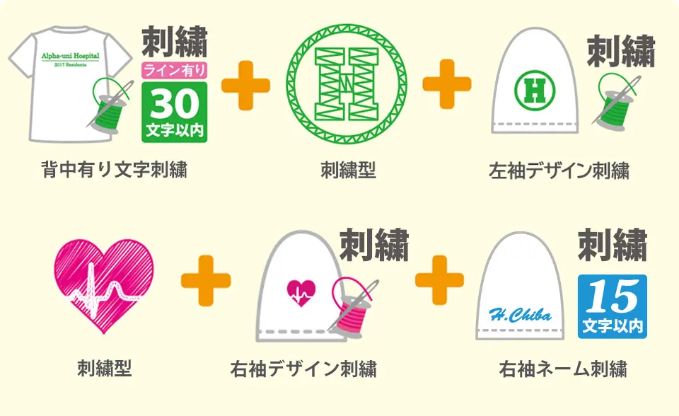 背中より面積の小さい胸と袖なら、コストをおさえつつ刺繍が入れられます!