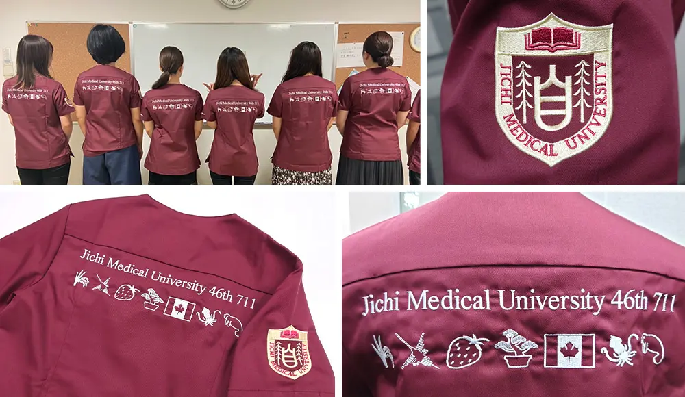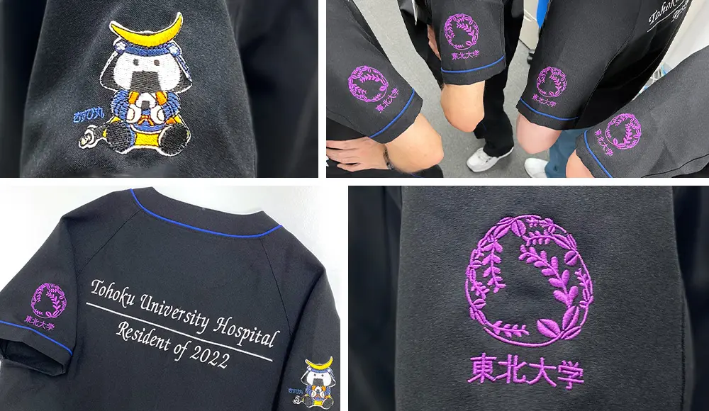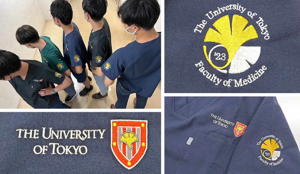 大学のシンボルマークを入れてクールに仕上げた卒業記念スクラブ
