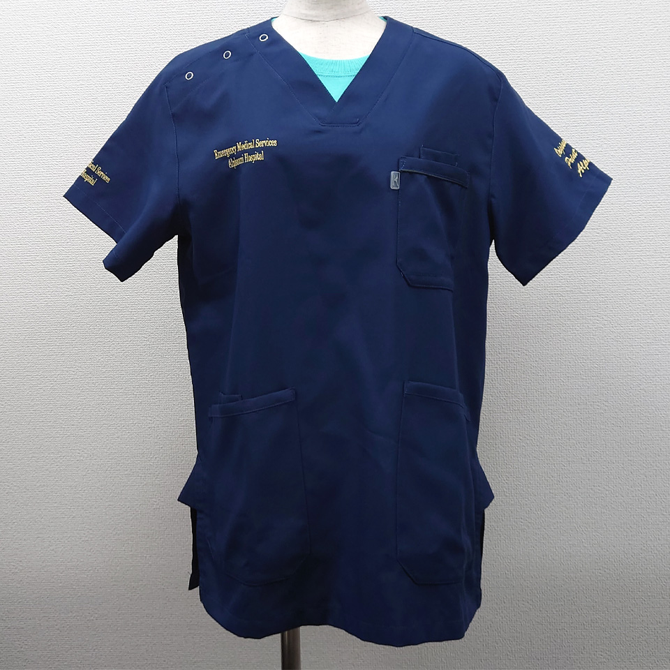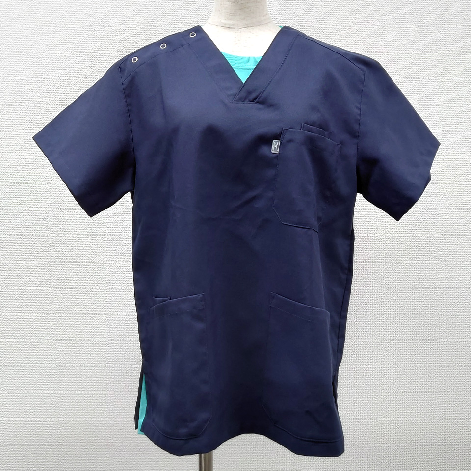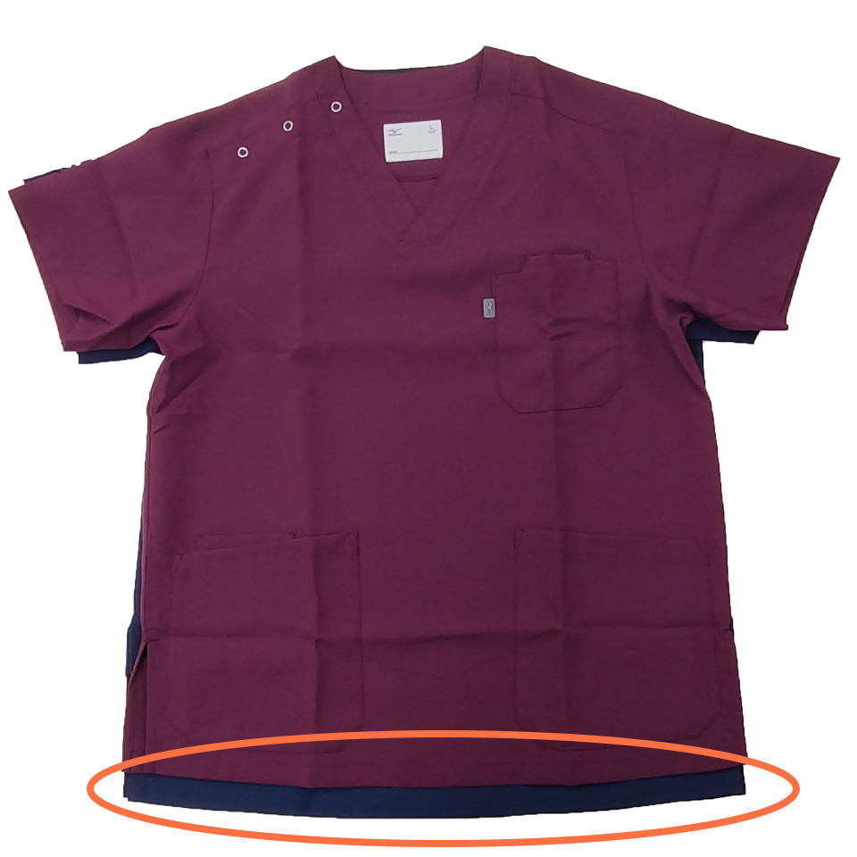 スクラブの内側に少し派手目なTシャツを着て透けるのか見てみます。