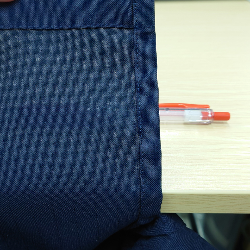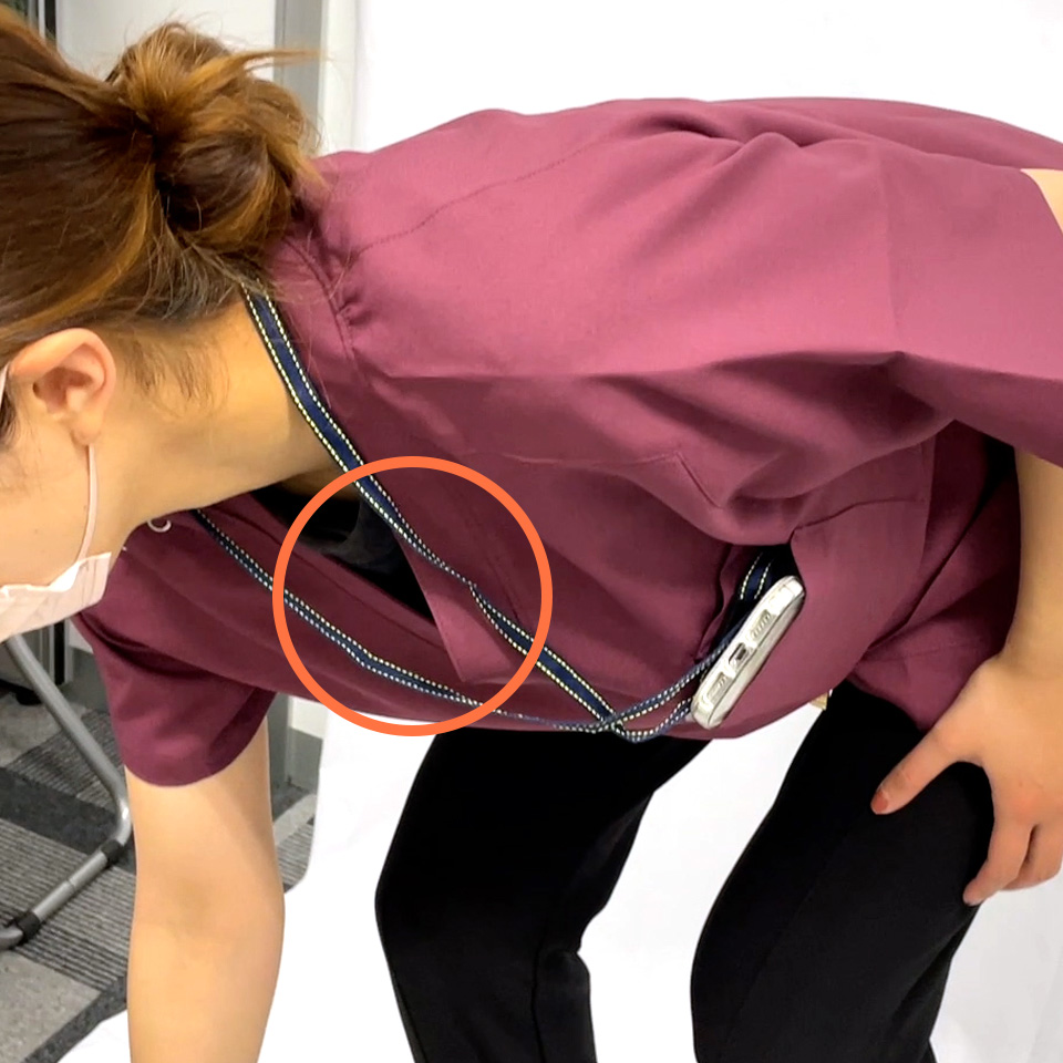 エチケット設計…胸ポケットに物を入れてかがんでも胸元が見えにくく、腰周りが見えにくい設計のこと。