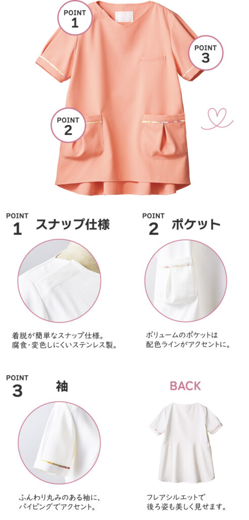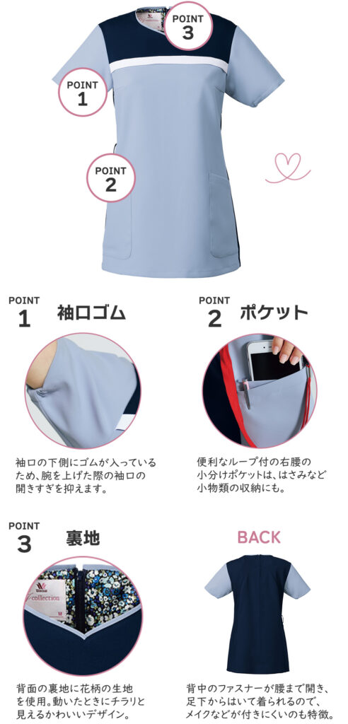 そんなあなたに、カラーが、かたちが、えりがカワイイ、いろんなタイプの”かわいい”スクラブをご紹介します。