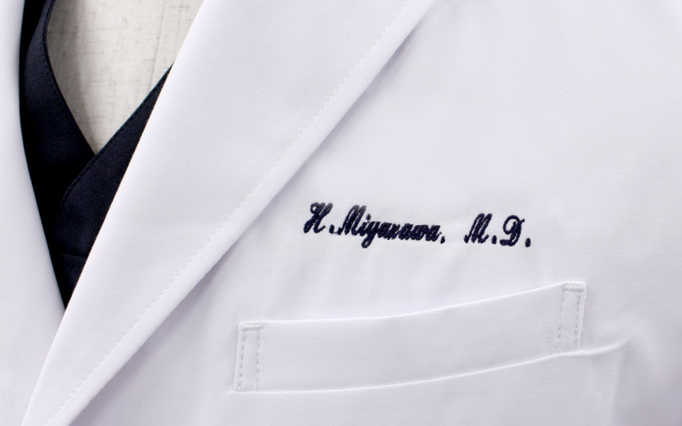 ドクターコート・ジャケットで多い刺繍加工をご紹介します。