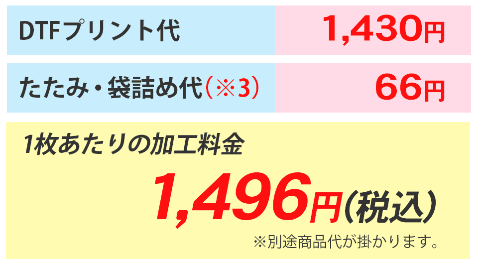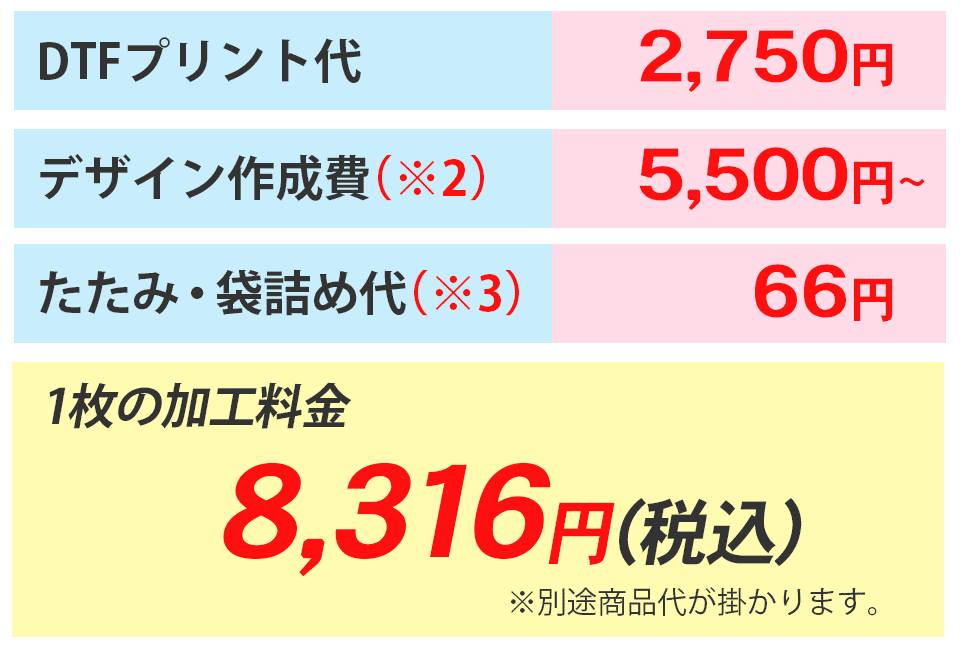 DTFプリントなら版代なし!3,300円のスクラブを含めても1枚あたり4,950円(税込)