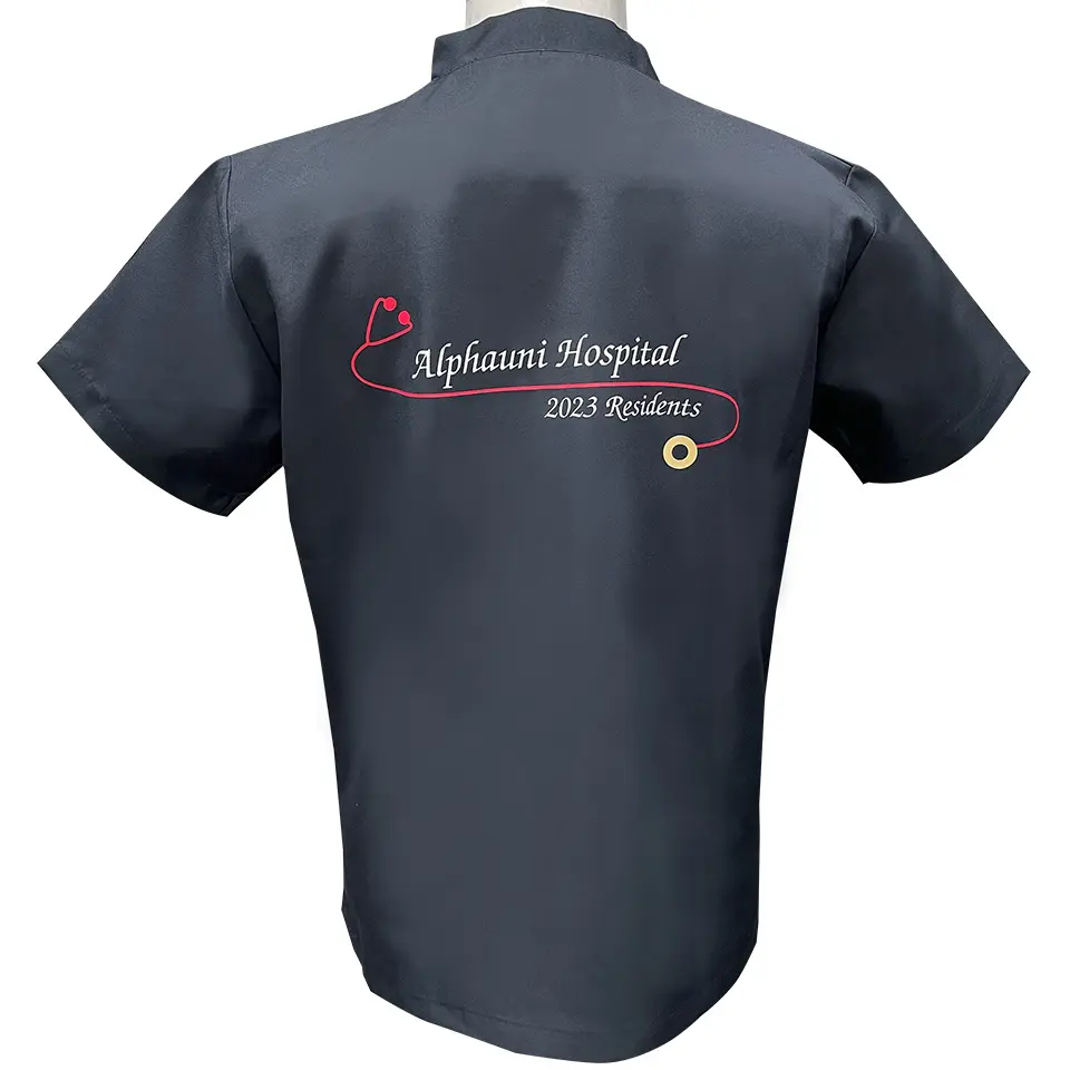 医療用スクラブに多色でプリントをしたい。けどコストは抑えたい・・! シルクプリントみたいに自然な仕上がりが良い。それなら、DTFプリントがぴったりです!お手頃価格でチームのオリジナルスクラブが作れます。