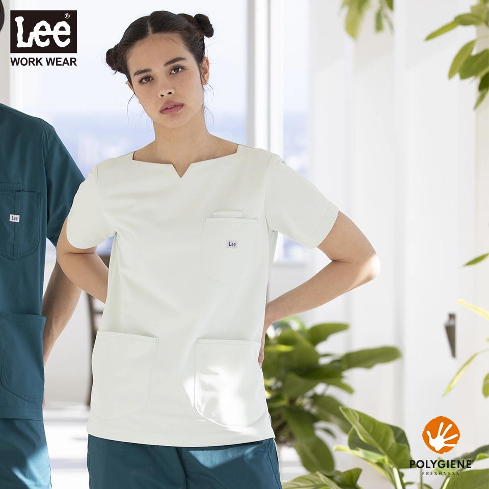 小松マテーレが得意とするビンテージ加工を施した素材のカジュアルな見た目で、着こなしの幅が広いのが特長。ストレッチ性や吸水性といった機能搭載。女性らしいシルエットも新鮮な新しいデザインのスクラブです。