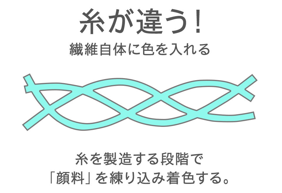 ポリエステル原料の段階で顔料を混ぜ着色することで製造工程を減らし、かつ色落ちしない繊維を使ったスクラブです。