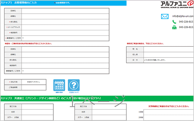 WEBオーダーは各カテゴリーの商品詳細ページからご注文ください。商品と一緒に刺繍・プリント加工の注文も可能です。