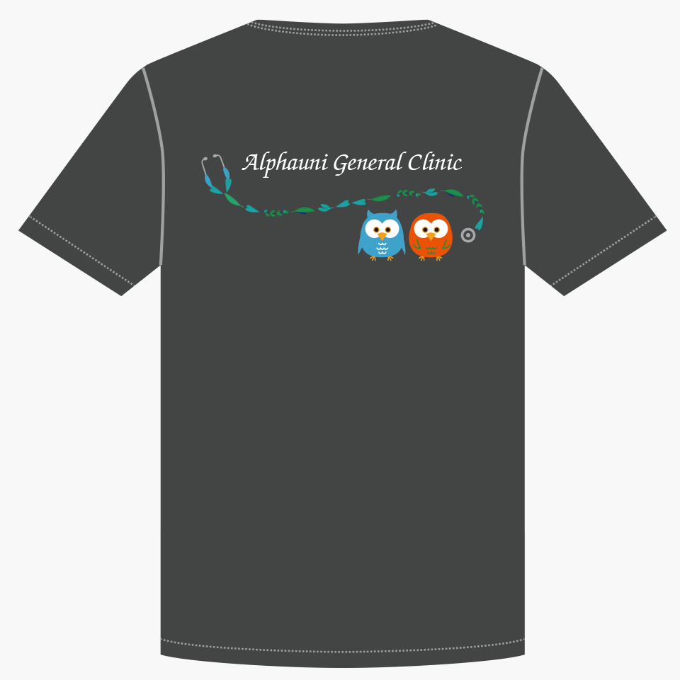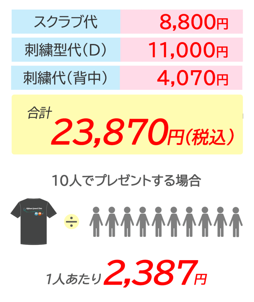 8,000円のスクラブの背中にデザイン刺繍(Dランク)を入れた場合の価格例です。