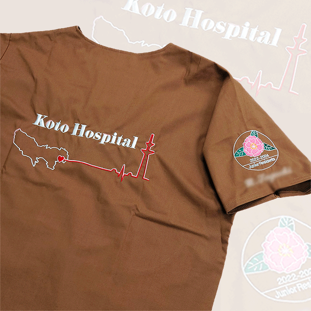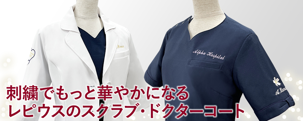 ステキな刺繍入りスクラブ・白衣を贈り物に