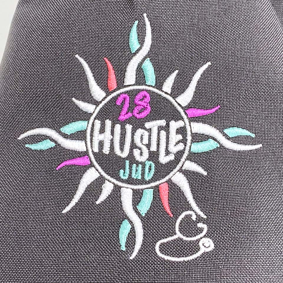 順天堂大学医学部ラグビー部様のスクラブ。校章とラグビー選手のシルエットがかっこいい!