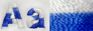 アルファユニのネーム刺繍は書体(フォント)、糸色、刺繍位置を選ぶだけで簡単に入れることができます。どの書体でも、密度が高く立体的で存在感のあるネーム刺繍をスクラブ・白衣へ!