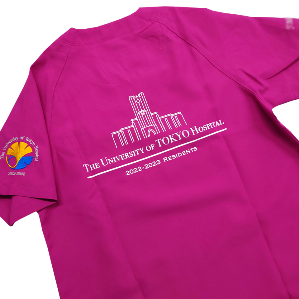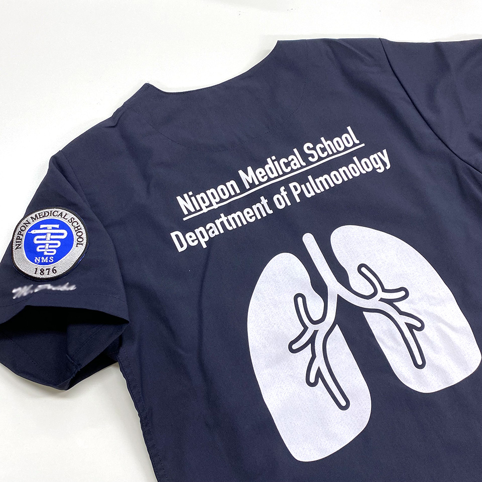 フォント刺繍と組み合わせれば大学名や病院名も簡単に入れられる!