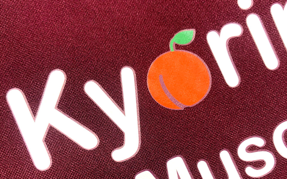 CAM転写プリントは多色向きのカッティングシートプリントです。 PCから専用のインクジェットプリンターで転写シートにプリントし、プレス機を使い、熱と圧力で転写シートを生地にプリント(圧着)します。綿、ナイロン、ポリエステルなど様々な素材に対応できます。