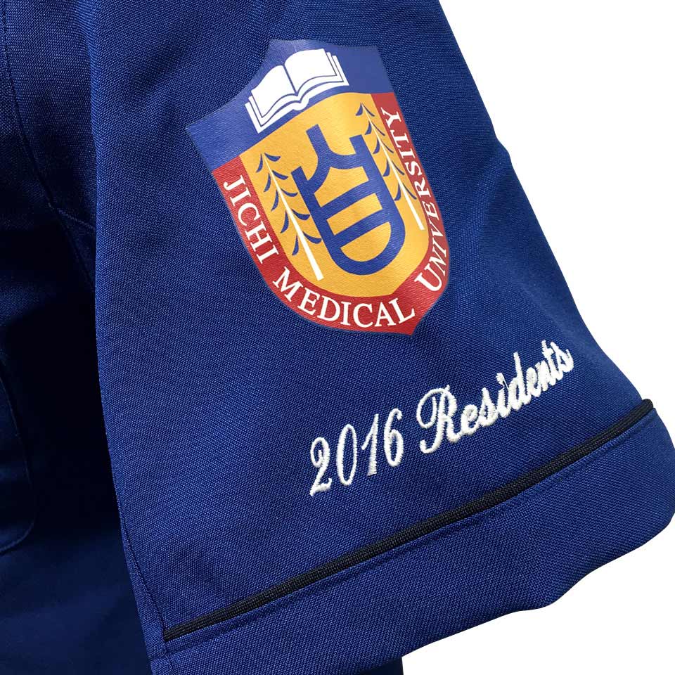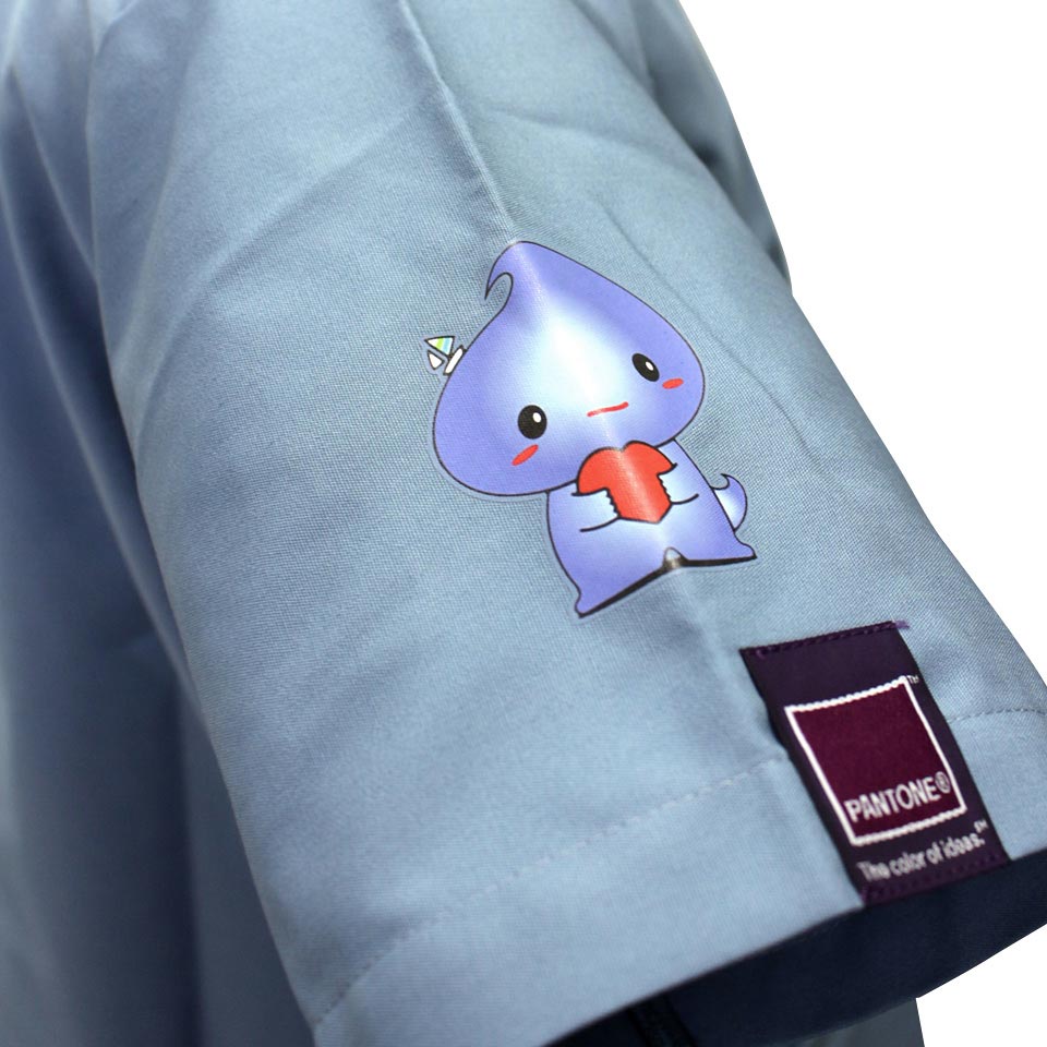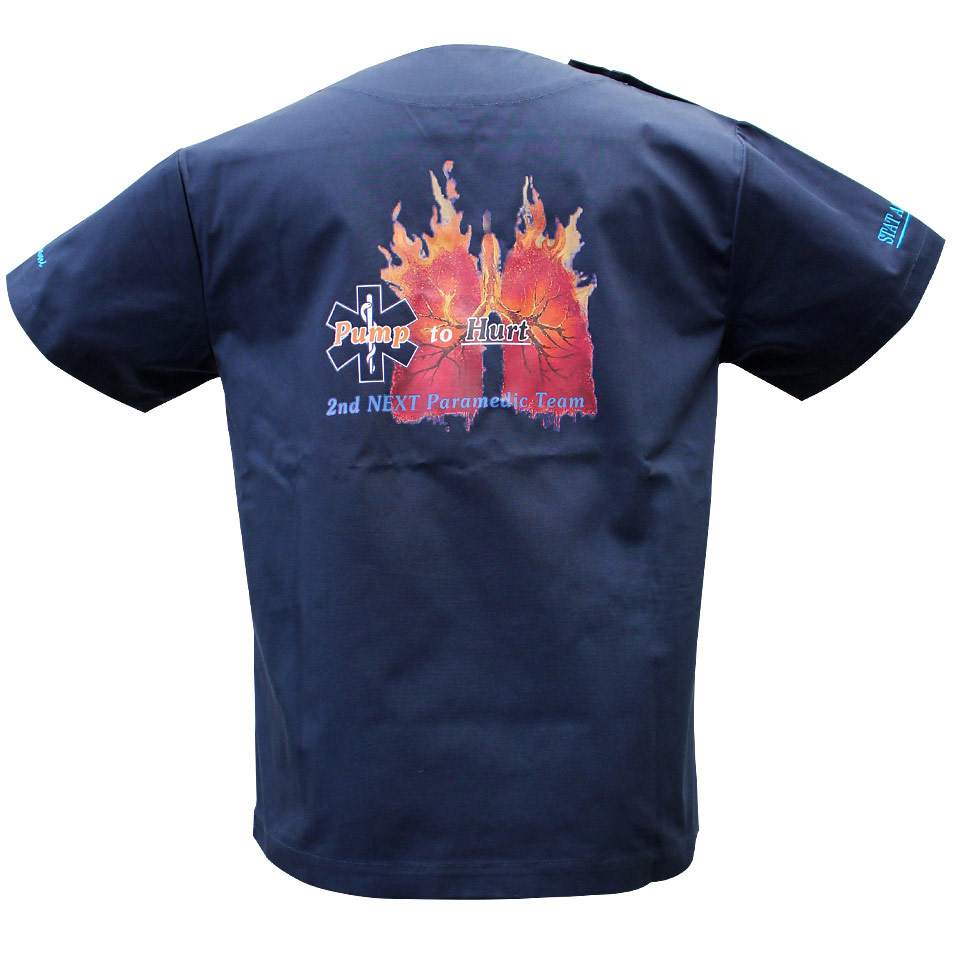 人気No.1は胸or袖のカラープリント!胸や袖のワンポイントでも存在感のあるオリジナル・スクラブを安価で作成することができます。