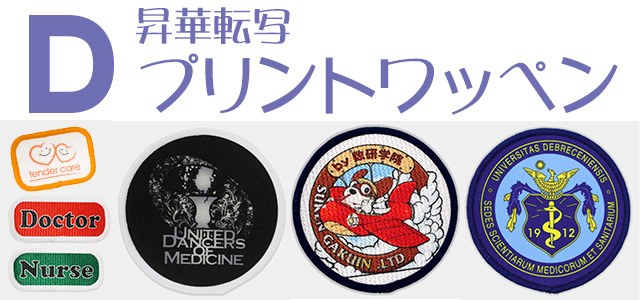 熱で染料を生地に染み込ませるプリントを用いたワッペンです。刺繍で表現できないような細かいデザインやフルカラーのプリントが可能です。
