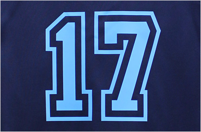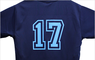 野球・バスケットボール・サッカーなどの背番号やゼッケン、個人ネームなど1枚ごとに違う数字や文字、柄をプリントするのに最適です。背番号など1枚ごとに違う柄をプリントする場合、版を作る必要が無いのでシルクプリントよりも安くなります。