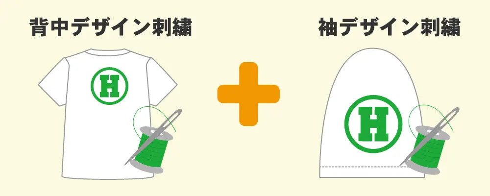 背中にえらべるフォント刺繍、袖にデザイン刺繍を入れて費用を抑える刺繍だけパターン!