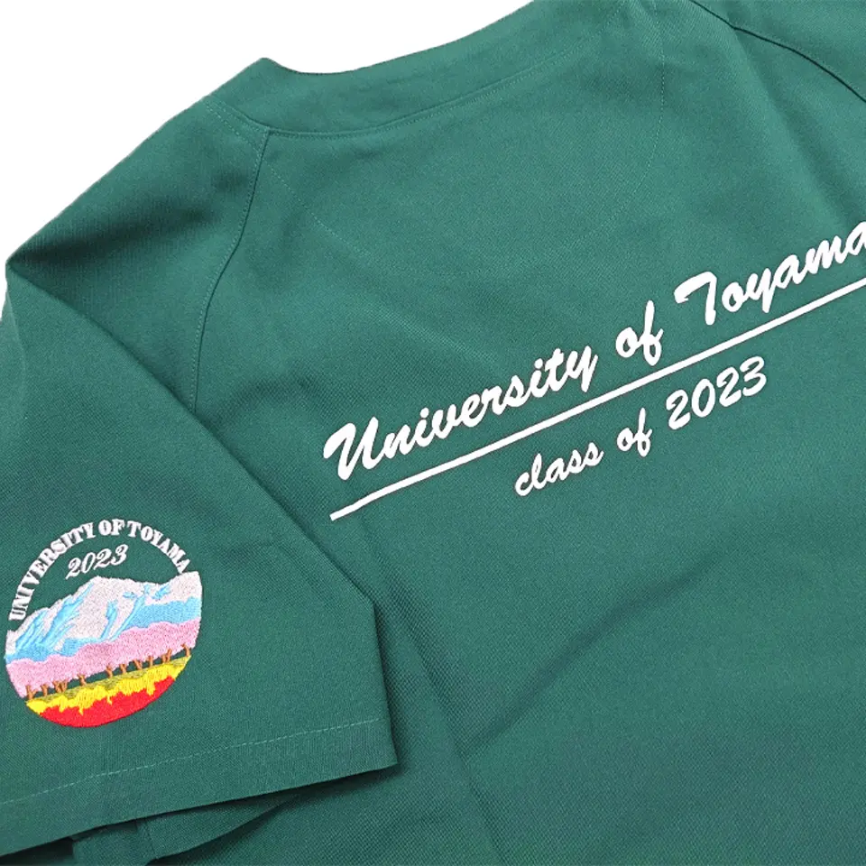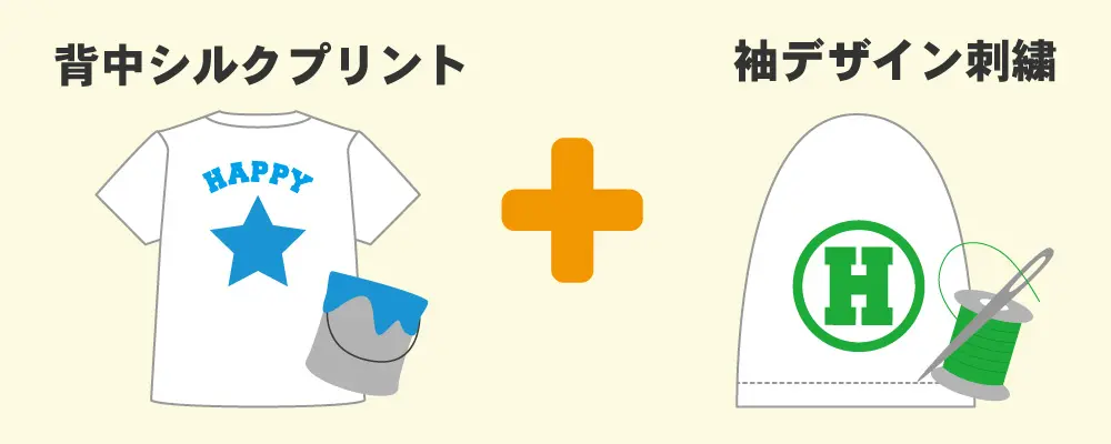 背中にシルクプリント、袖にデザイン刺繍を入れる加工パターンも人気です!