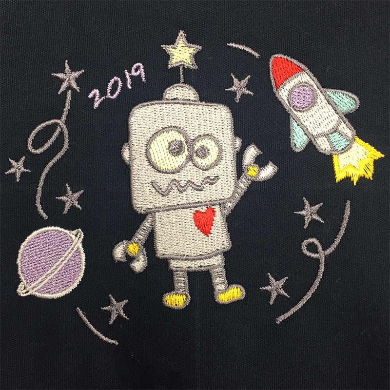 アルファユニのスクラブ刺繍は、どんなデザインでも高いクオリティで再現することができます。