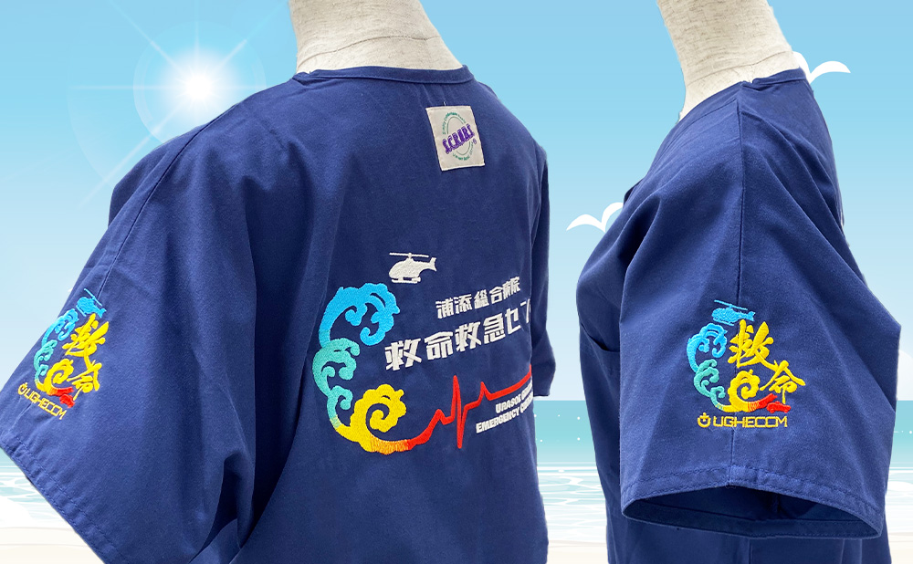波と心電図、ドクターヘリの刺繍