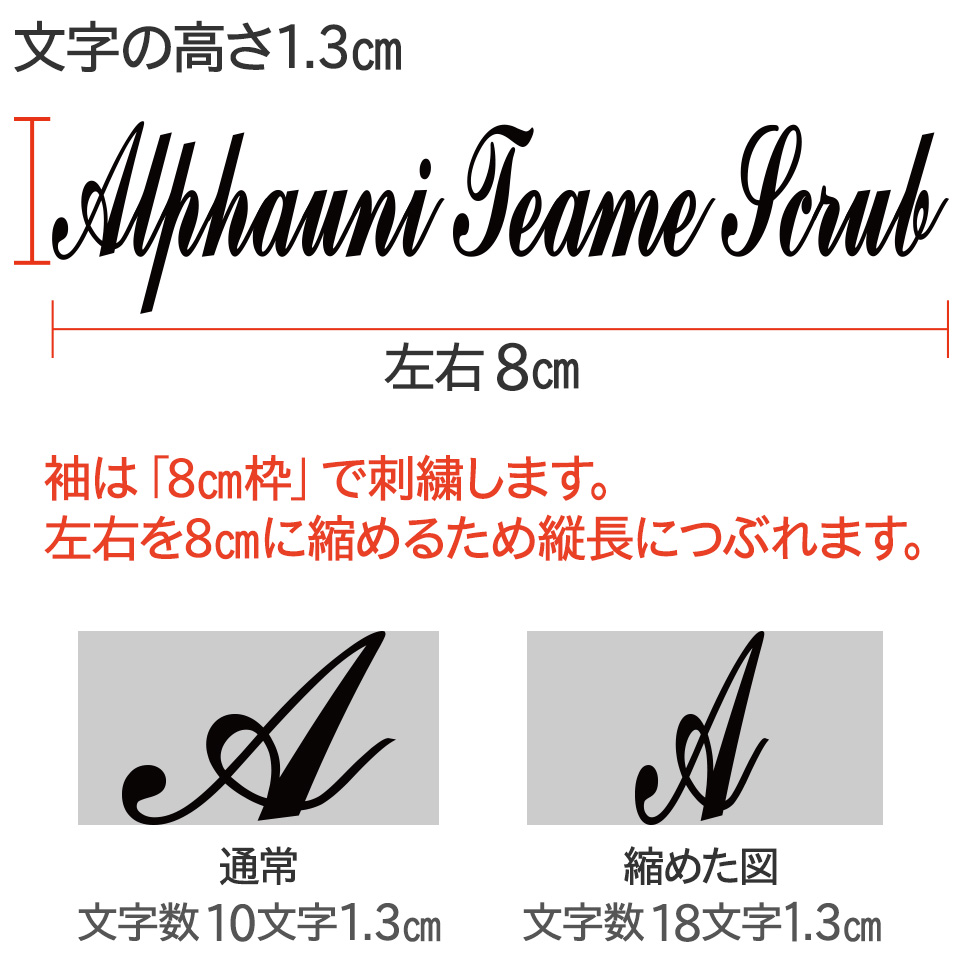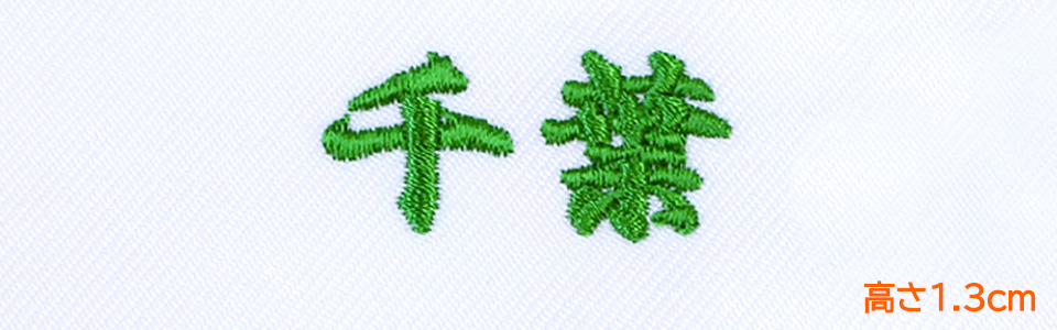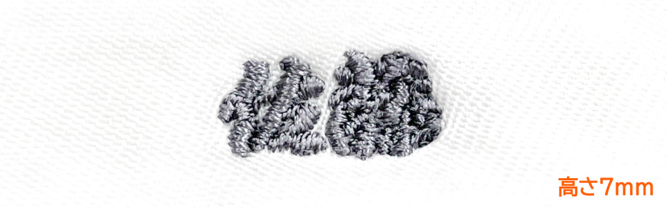 文字の高さが1cm以上あっても画数が多いものはつぶれる場合がございます。 基本、文字の高さ1.3cmで刺繍しております。