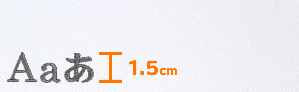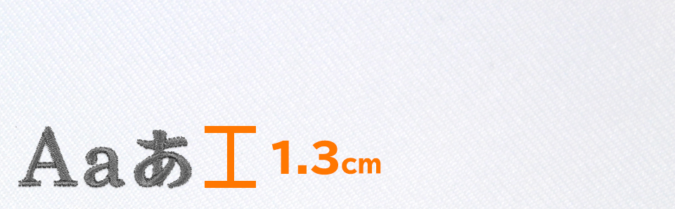 ネーム刺繍は基本3サイズ(高さ1cm・1.3cm・1.5cm)があり、弊社で調整して刺繍いたします。