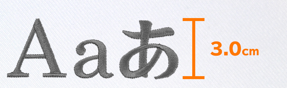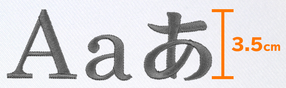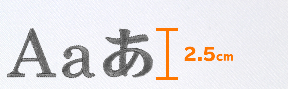 ※日本語書体は、1cmにすると書体によって文字が潰れてしまい綺麗に刺繍できない場合があります。