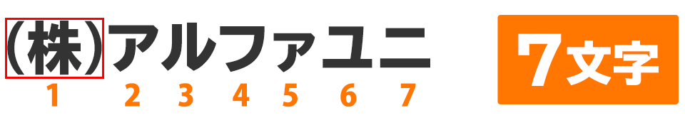 会社名の(株)(カッコ株は1文字でカウント+文字数6文字=合計7文字)