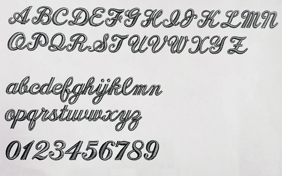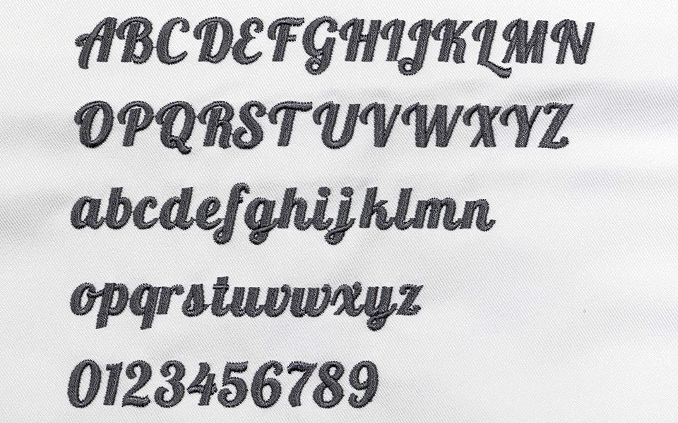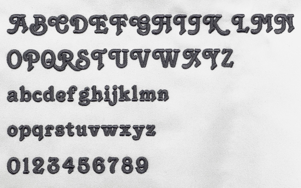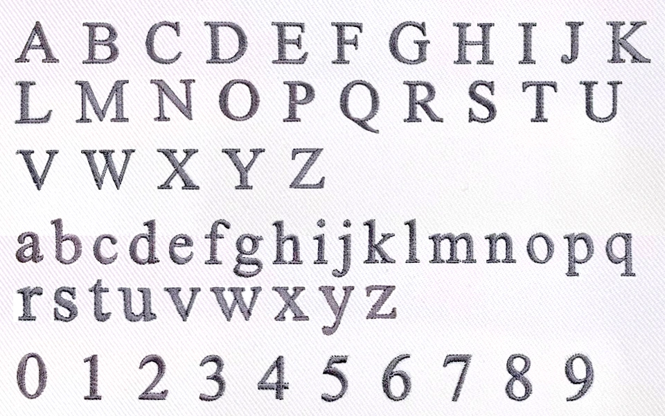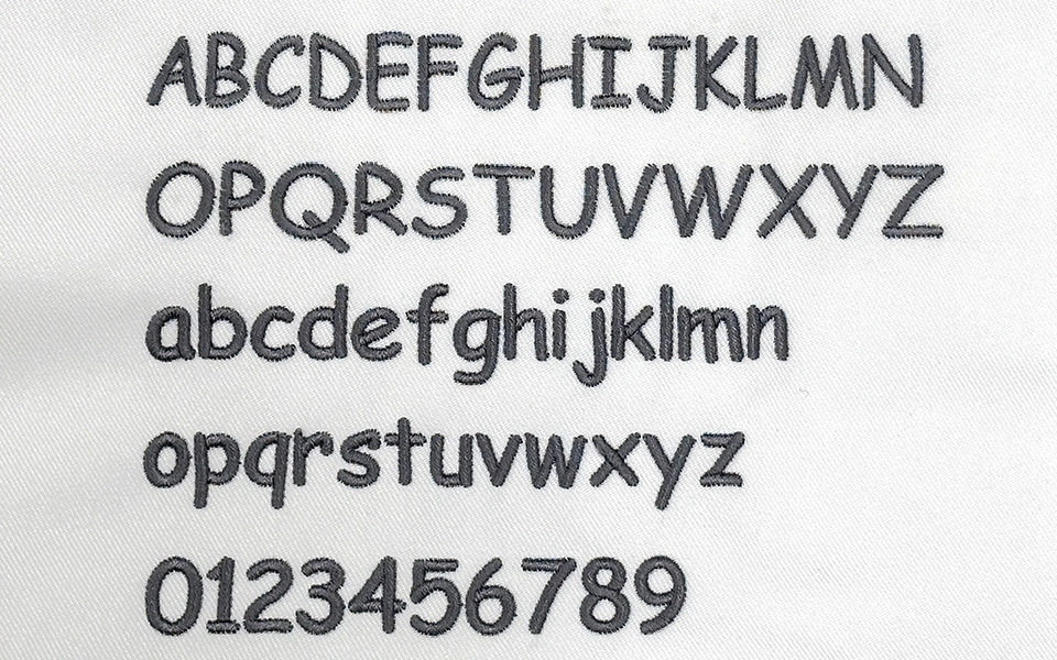 ※コンピューターミシンに搭載されている書体(フォント)を使用するため、告知なく書体が変わる場合がございます。また、前回のご注文と書体が変わる事がございます。