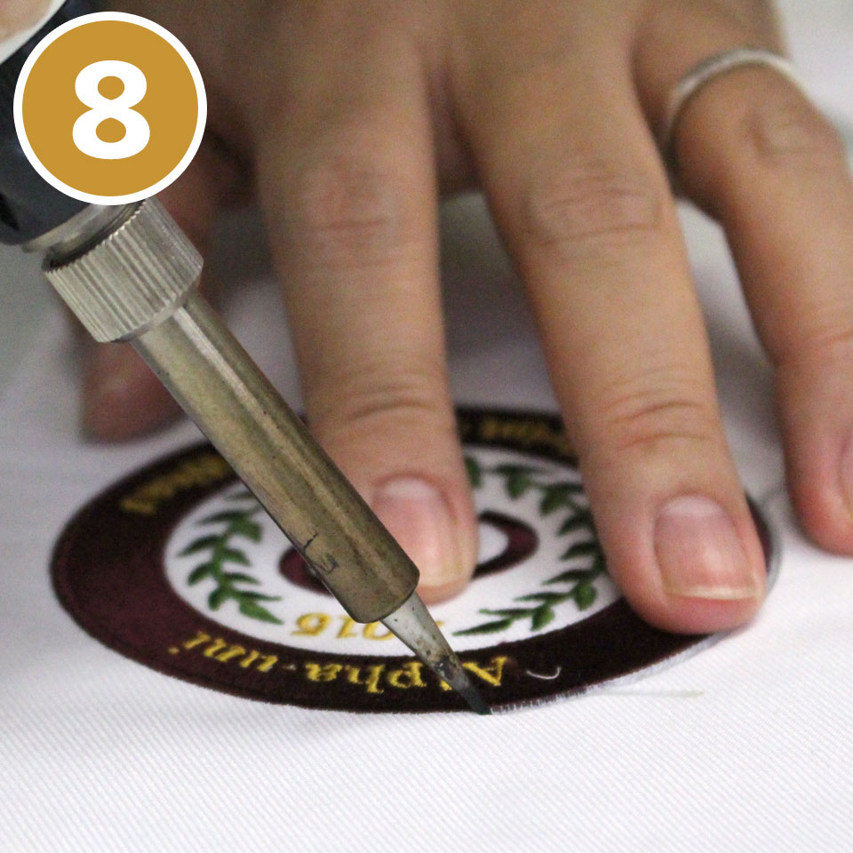 ワッペンの縁はヒートカット、裏面の処理はアイロン接着フィルム加工を行います。