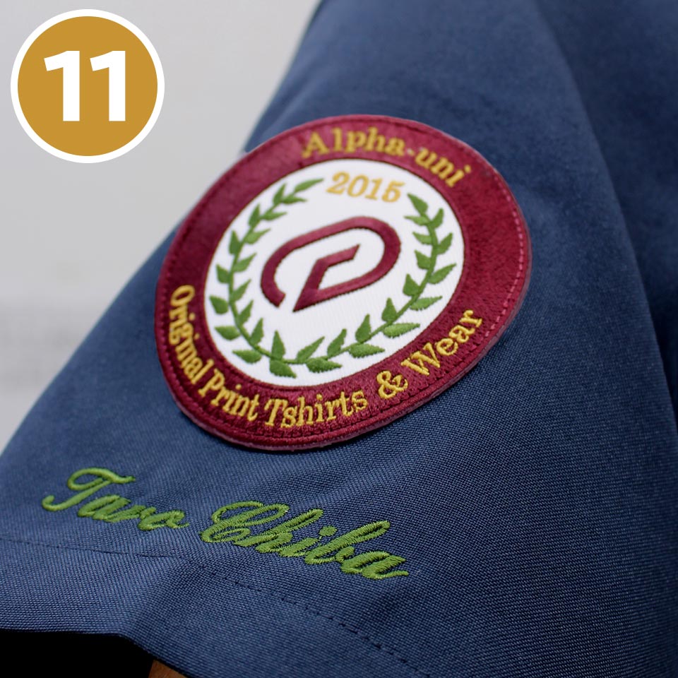 刺繍ワッペンはユニホームなどの生地に直接刺繍を施しますが、刺繍ワッペンはベース生地に刺繍を施したものを取り付けて(縫い付け、アイロン接着)使用するため、ユニホームやポロシャツはもちろん、帽子、エプロン、バックなど、様々なアイテムで使用が出来ます。