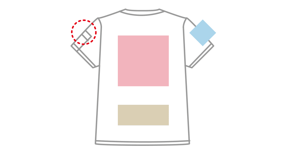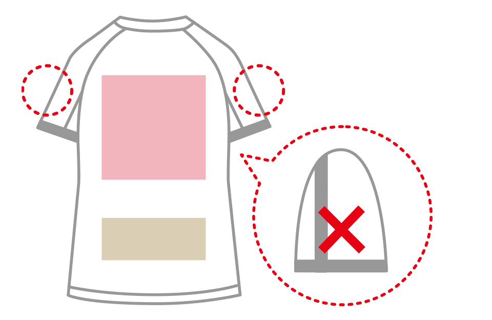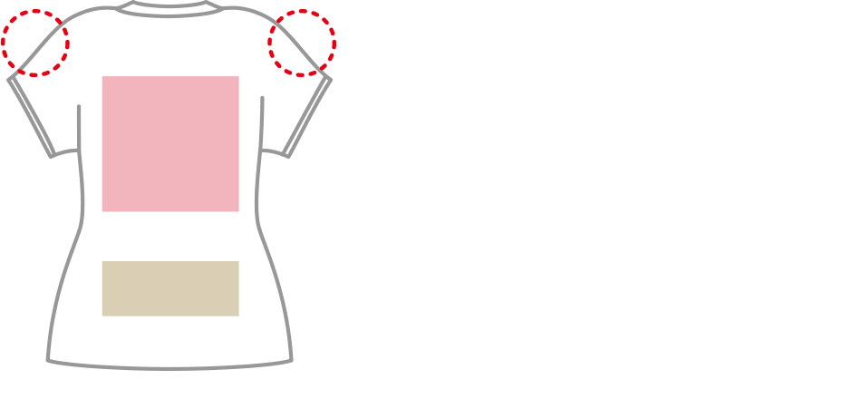 | 袖 | 両袖中心に縫い目があるため、プリント不可 |