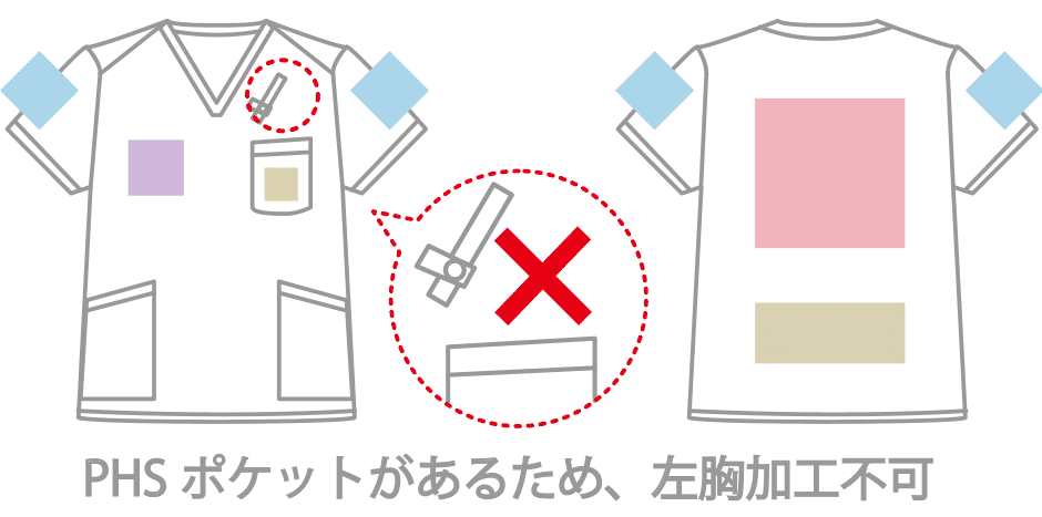 | 右胸 | PHSポケットがあるため、プリント不可 |