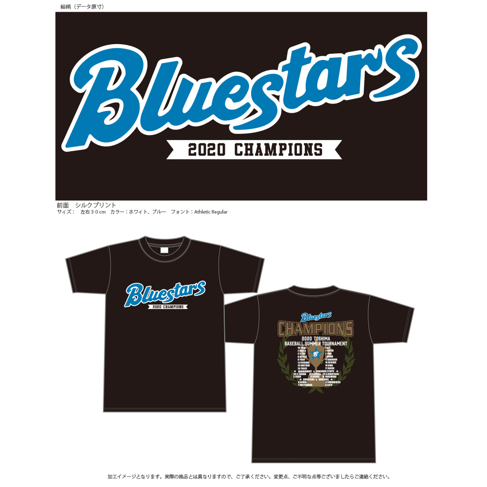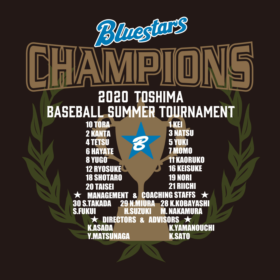 東京豊島区少年野球チームブルースターズ様 優勝記念Tシャツ